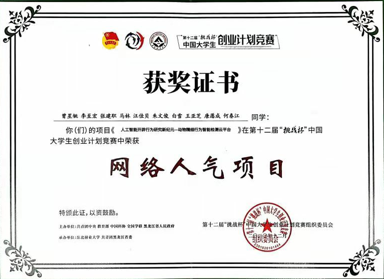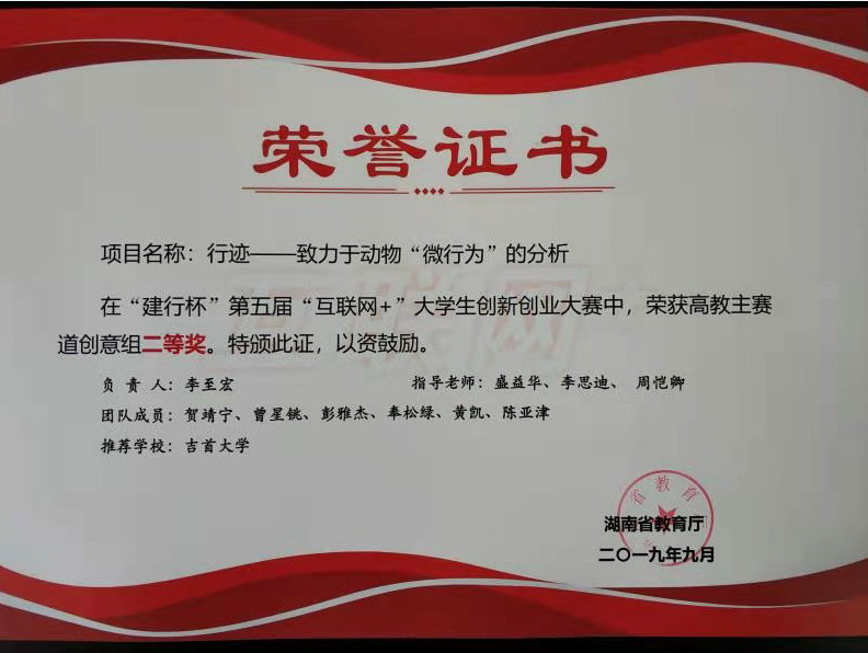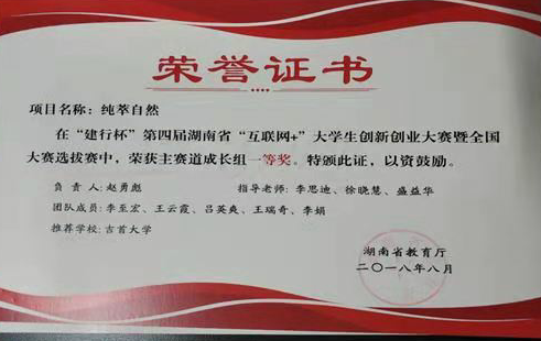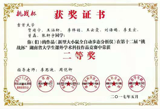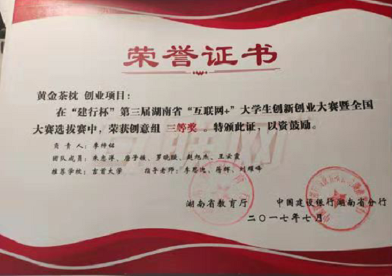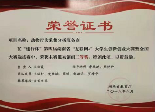 2017省互联网+创业大赛三等奖 2017挑战杯湖南二等奖