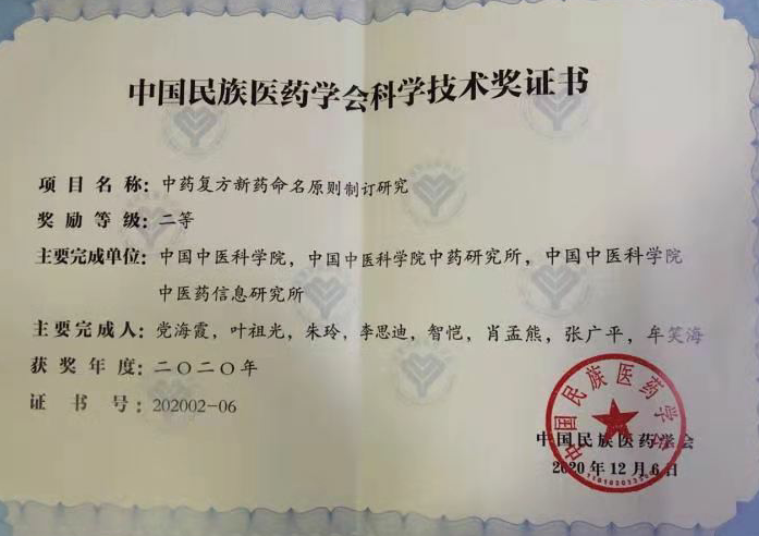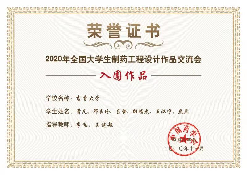 2020中国民族医药学会科学技术奖二等奖 2020全国老员工制药工程设计竞赛入围作品(国家级三等奖)