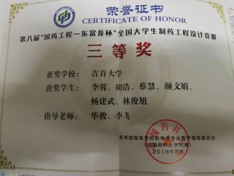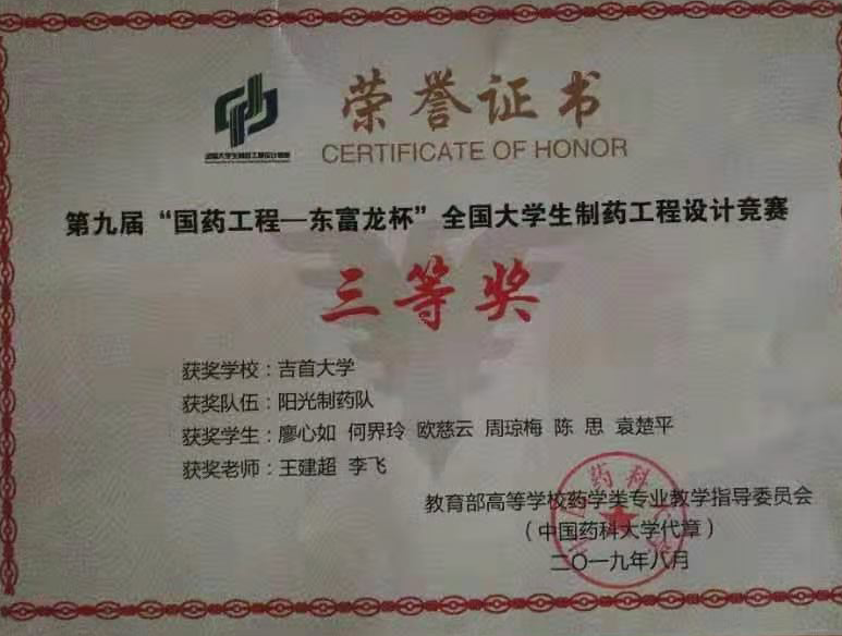 2019第九届全国老员工制药工程设计竞赛三等奖 2013年第十届挑战杯省赛二等奖
