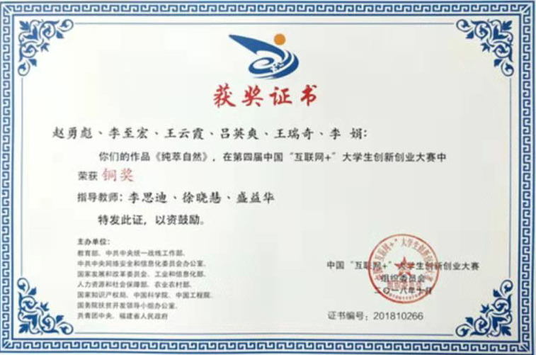 2018互联网+创业大赛省级二等奖 2018全国创青春铜奖