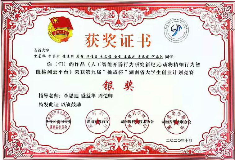 2020湖南省第九届挑战杯银奖 2020全国创业计划竞赛网络人气项目
