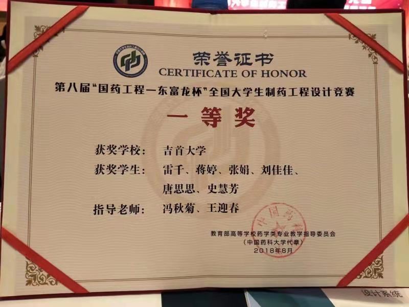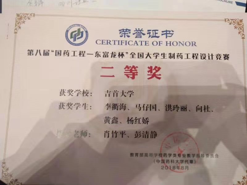 2018全国老员工制药工程设计竞赛三等奖 2018全国老员工制药工程设计竞赛三等奖