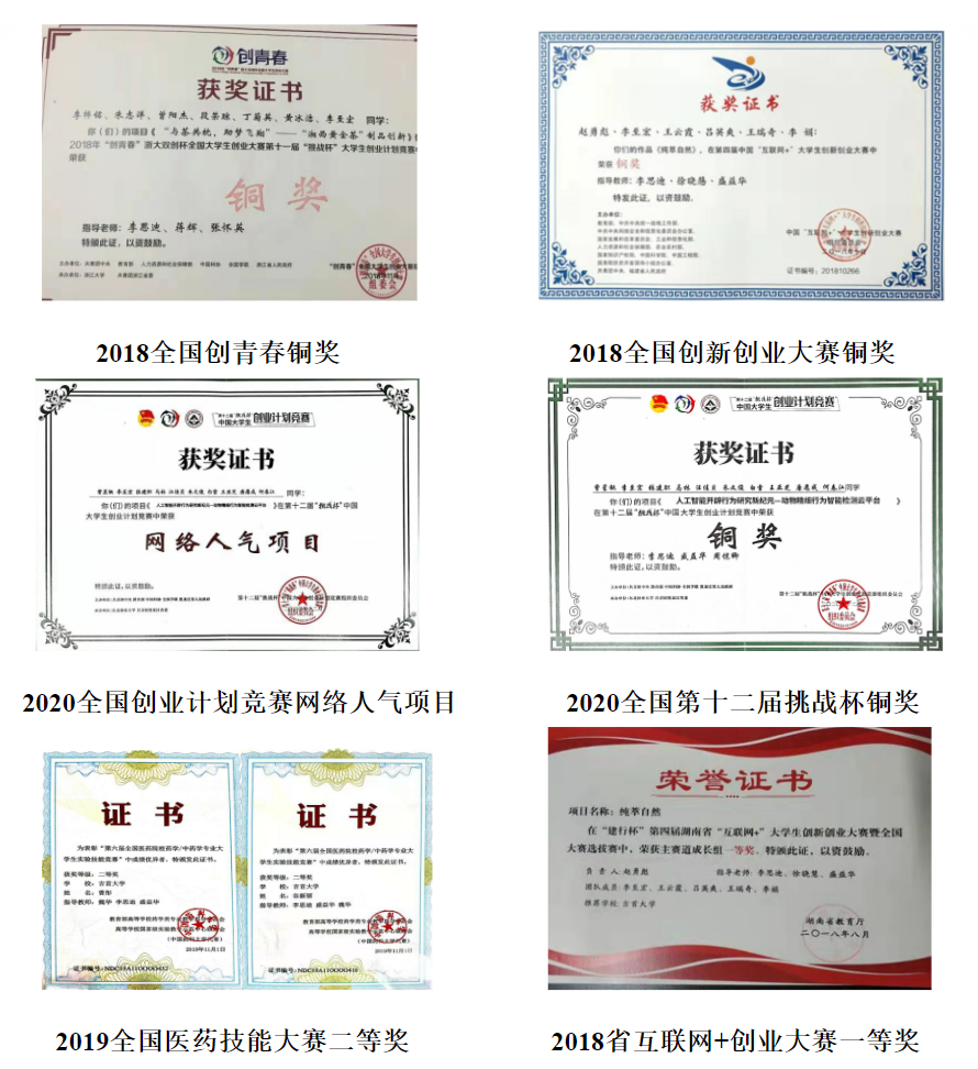 2018年:全国创青春铜奖、全国创新创业大赛铜奖、省互联网+创业大赛一等奖
