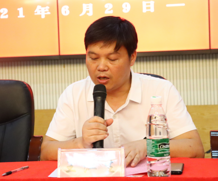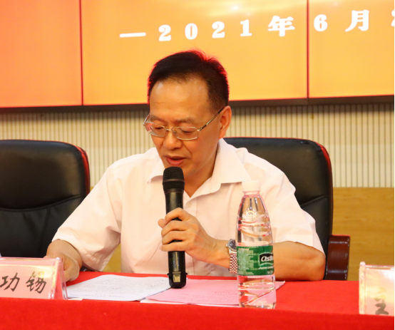 图为党委副书记、经理陈功锡在闭幕式上讲话