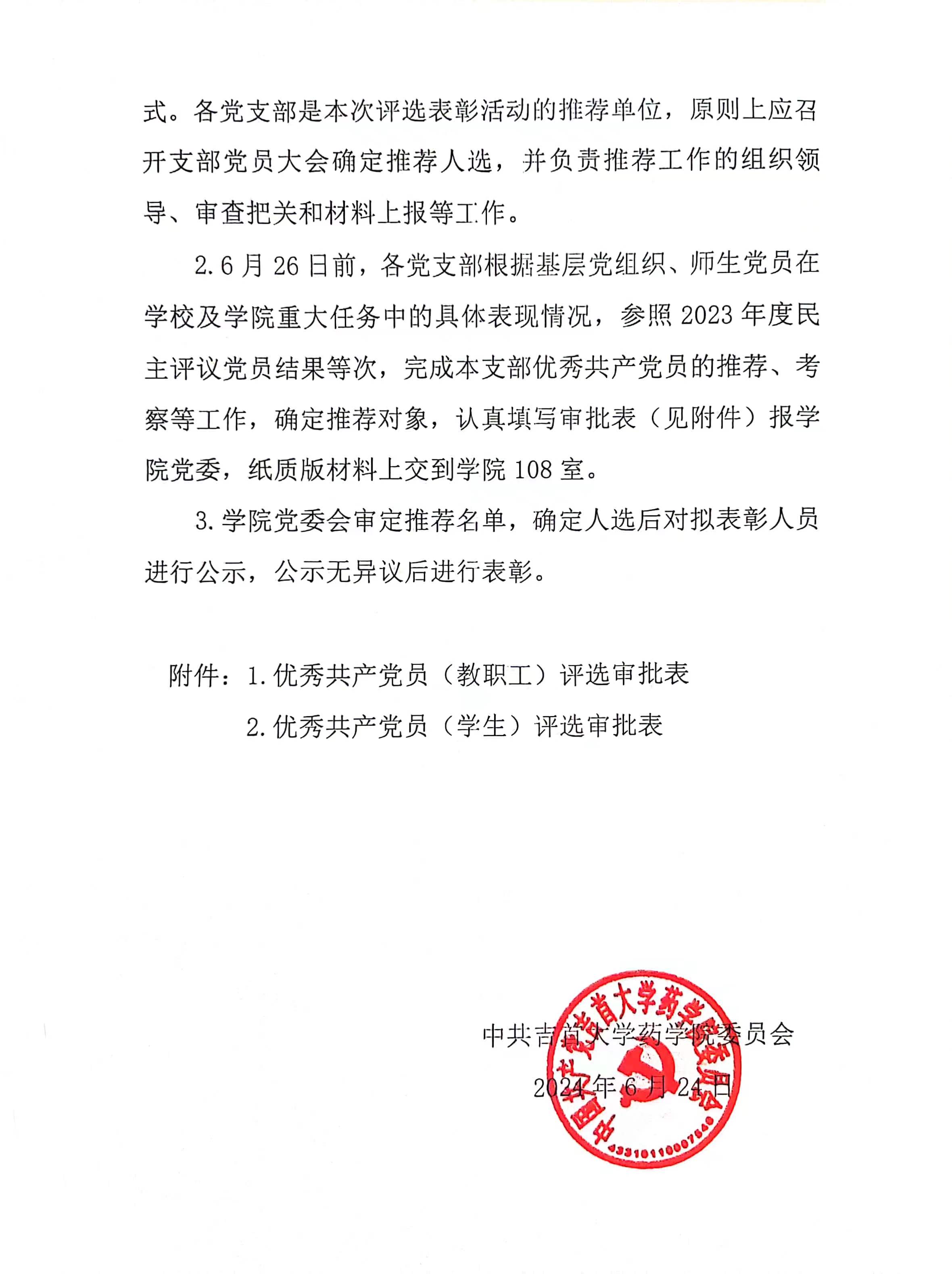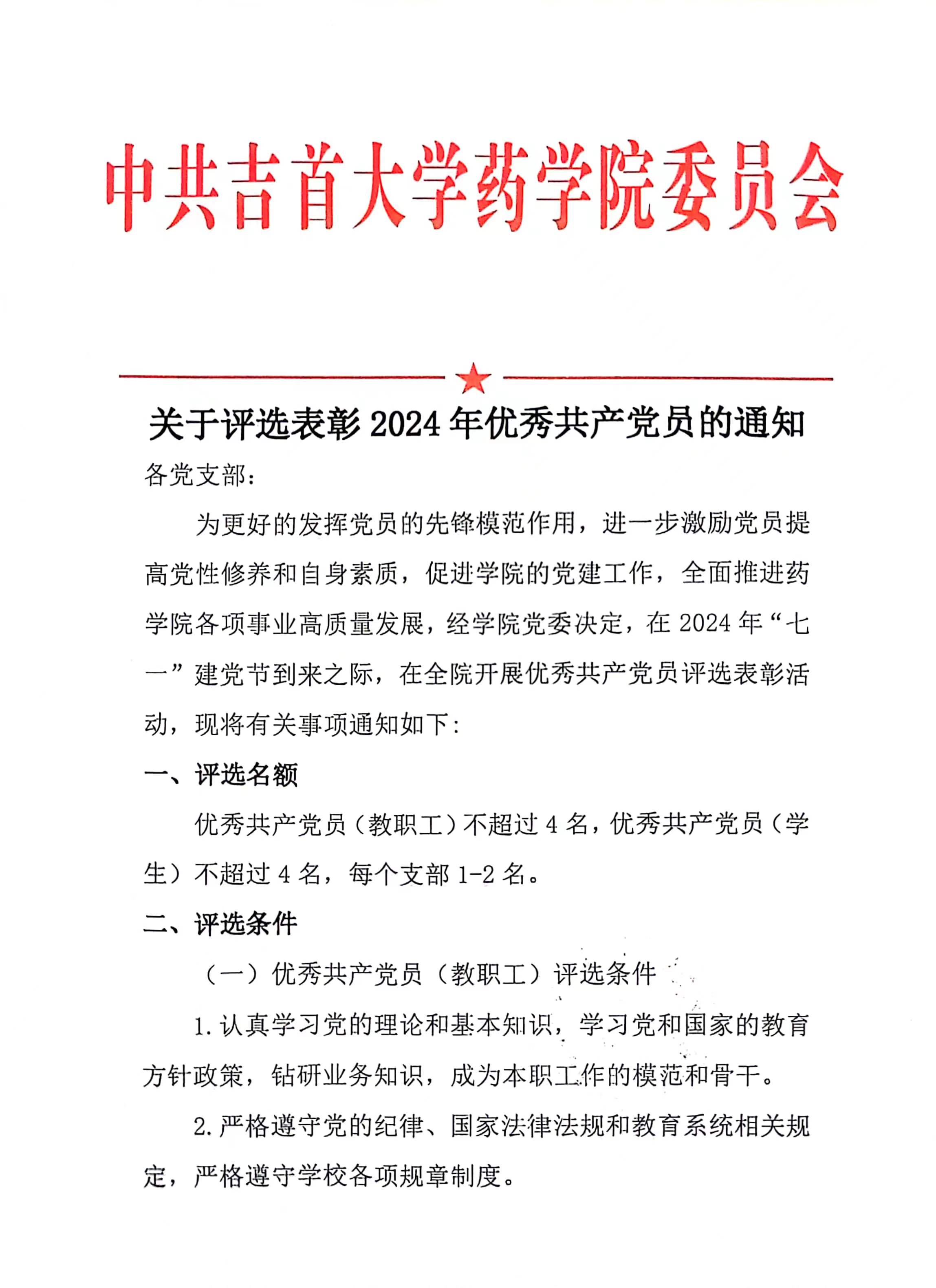 关于评选表彰2024年优秀共产党员的通知