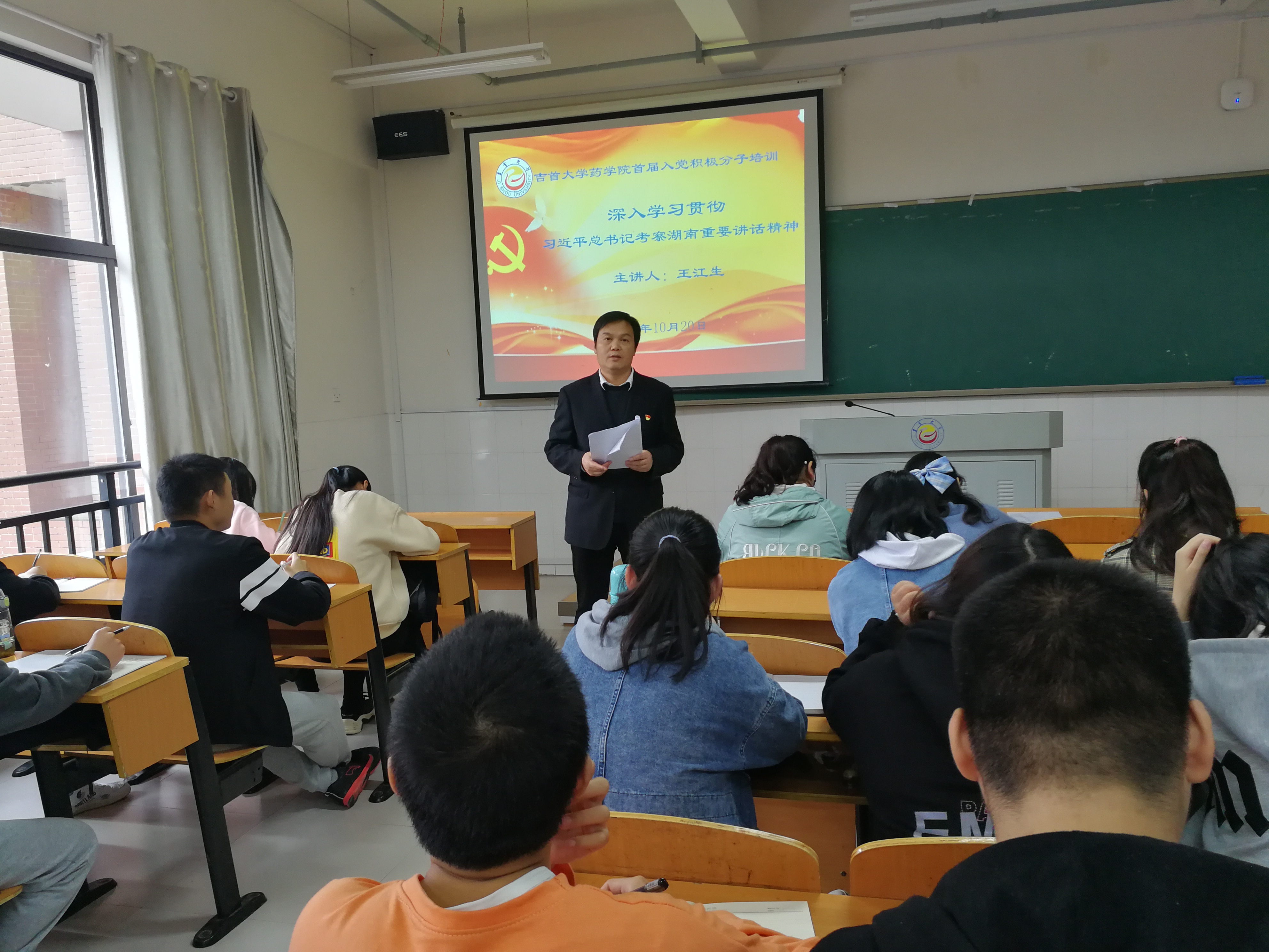 本网讯(通讯员章扬)10月20日中午,公司于预科楼2402教室进行公司首期入党积极分子培训班,第一讲主题是《深入学习贯彻习近平总书记考察湖南重要讲话精神》。本次党课由王江生老师主讲。
