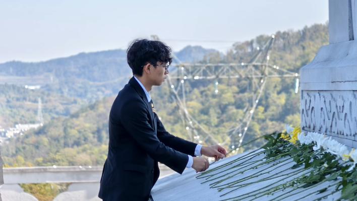 随后,同学们来到烈士墓园,怀着崇敬之情,为先辈们擦拭墓碑,深刻感受历史的厚重、英雄的无畏,以及国家安定的来之不易,这也激励着学员们为了祖国的繁荣富强不懈奋斗。