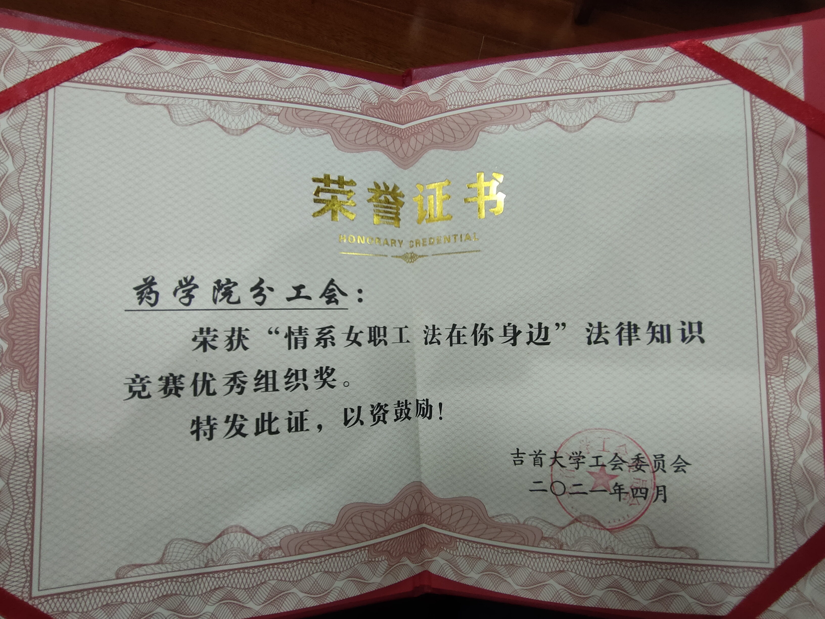 本网讯:(潘金凤)近日公司工会隆重举行了表彰大会,公司荣获“情系女工 法在你身边”法律知识竞赛优秀组织奖,工会副主席何玲老师荣获优秀工会干部,李贵老师、冯必钧老师荣获工会积极分子荣誉称号。
