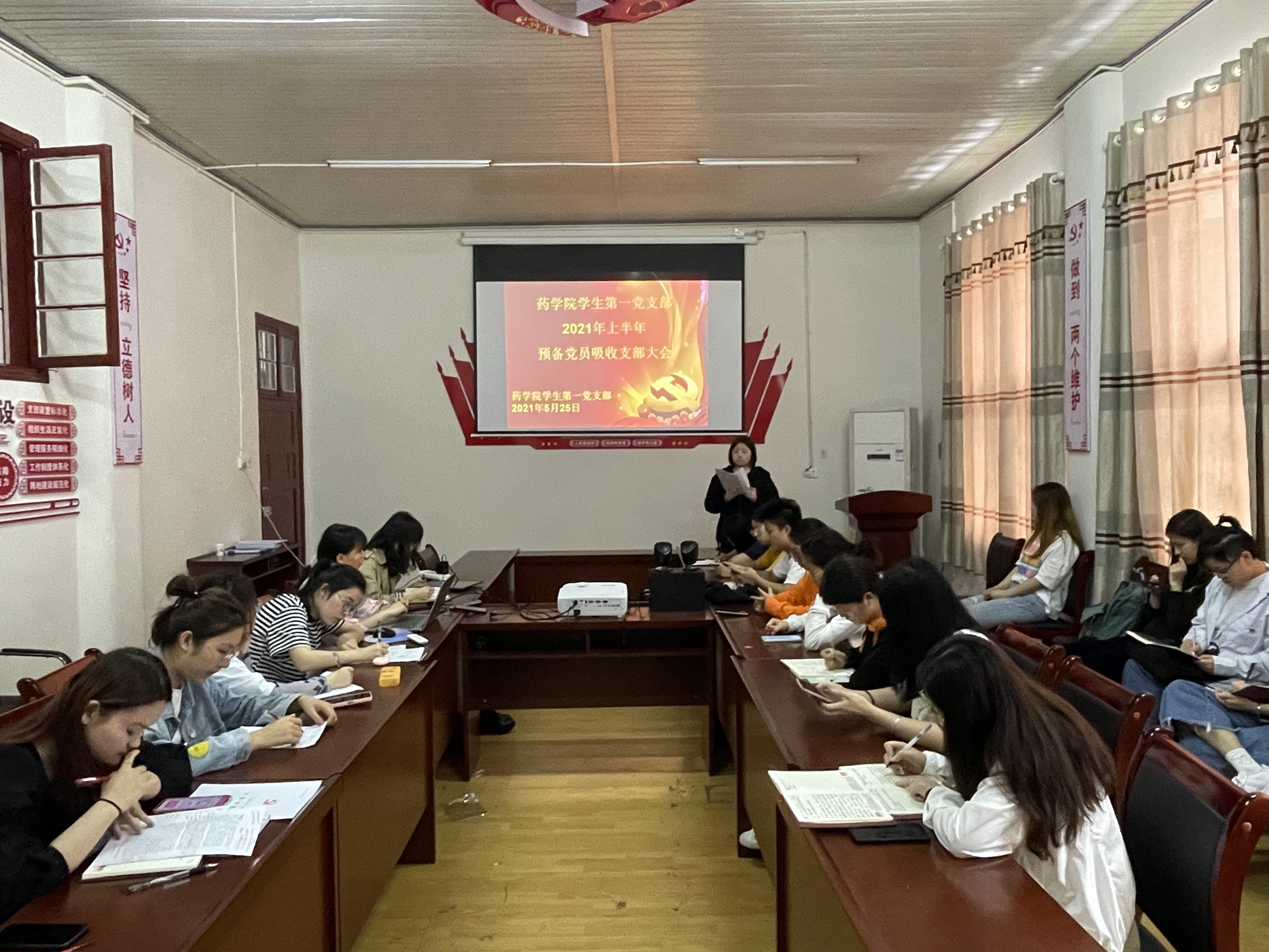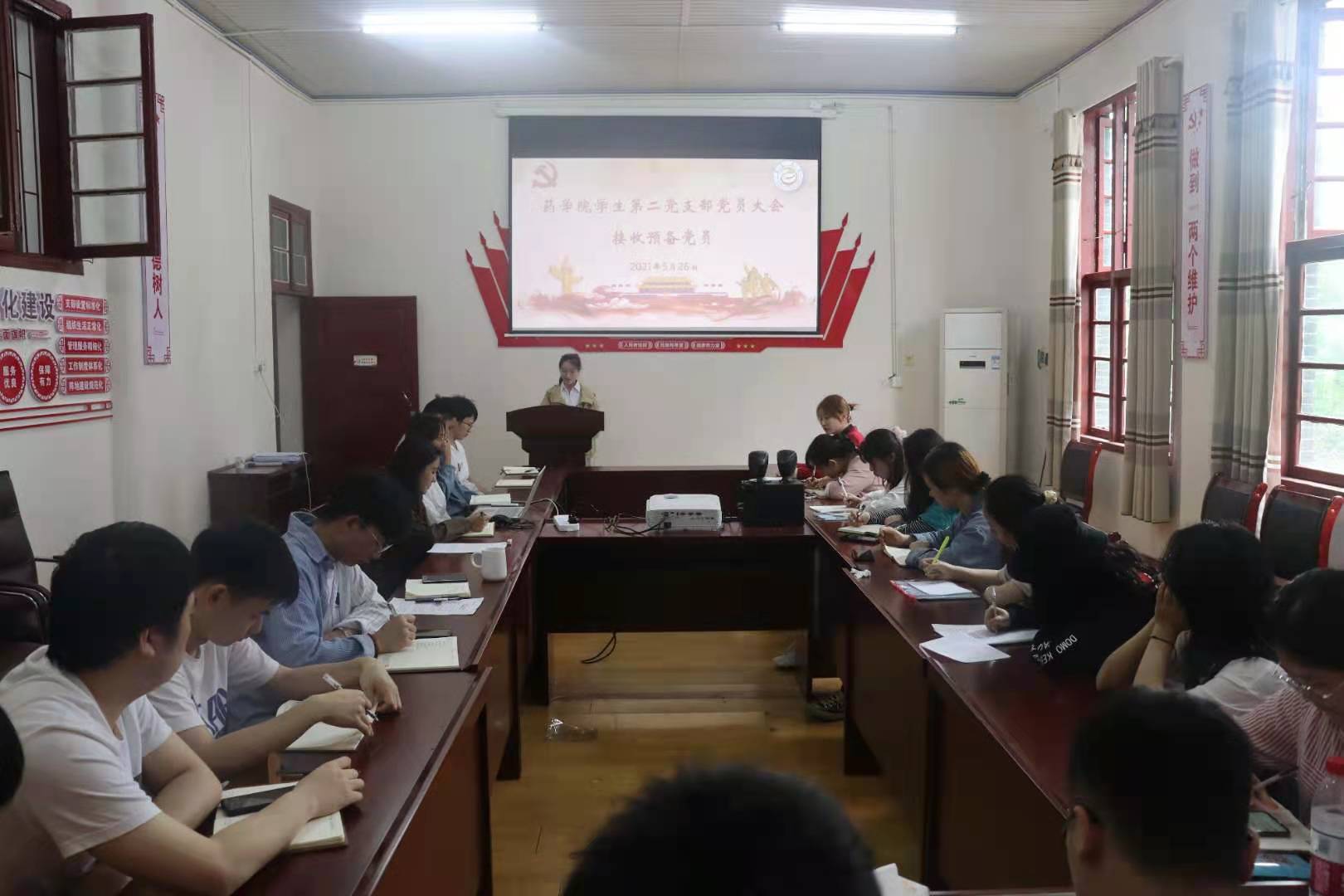 发展对象依次向党支部大会宣读入党志愿书,汇报对党的认识、入党动机、本人履历、家庭和主要社会关系情况,以及需要向党组织说明的问题。其入党介绍人介绍培养情况,并对其能否入党表明意见。支委李怡同志宣读各发展对象的支部综合鉴定材料。随后,与会党员进行了充分讨论,正式党员以无记名投票的方式进行投票表决。