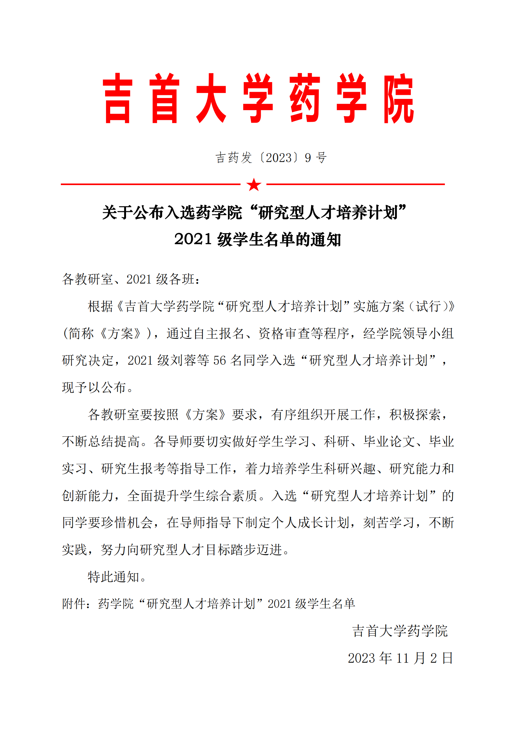 吉药发〔2023〕9号关于公布入选EMC易倍“研究型人才培养计划”2021级员工名单的通知.pdf