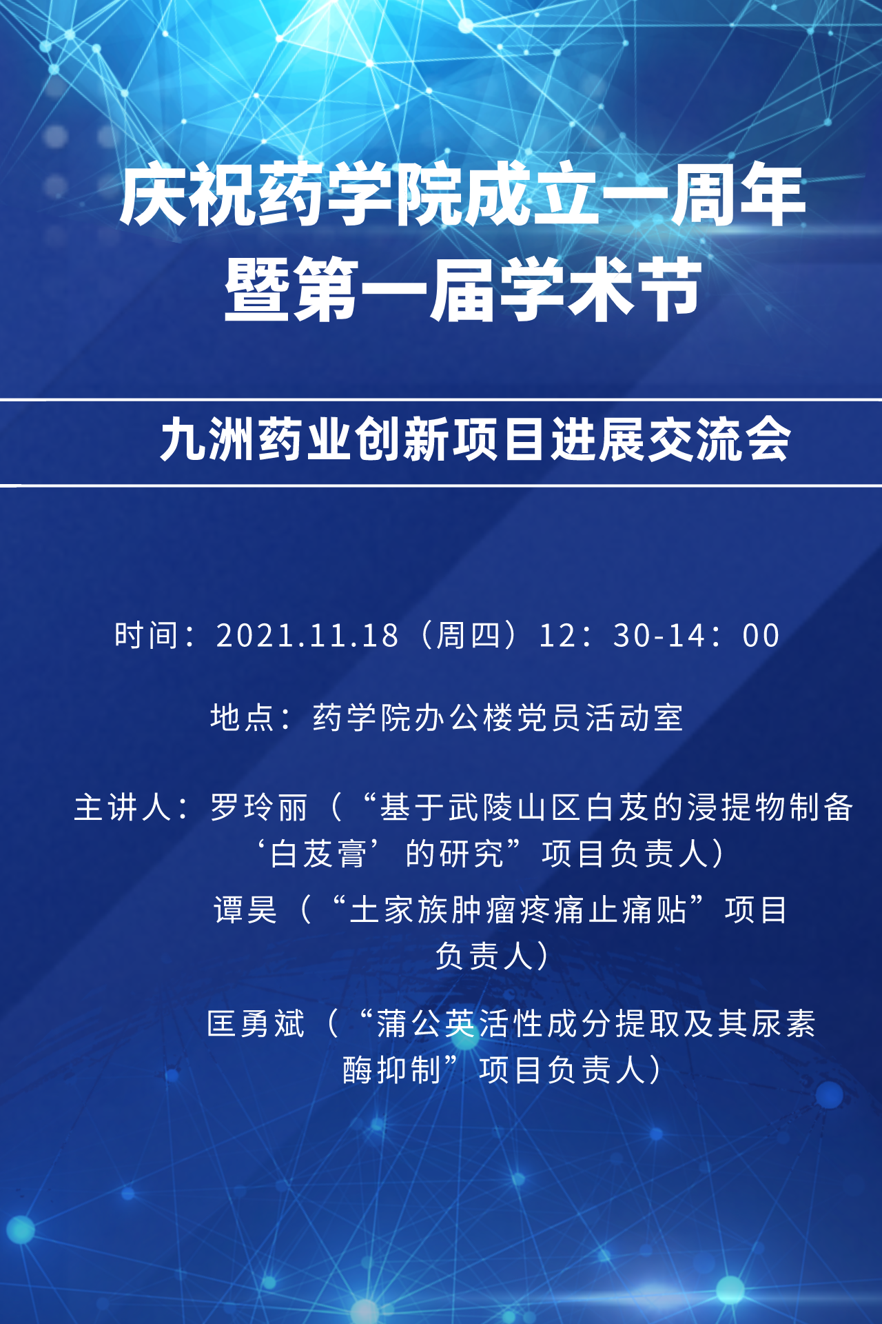 科技沙龙第1期--九州药业创新项目进展交流会预告
