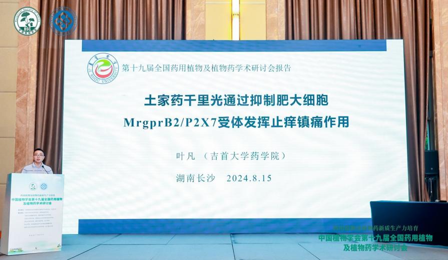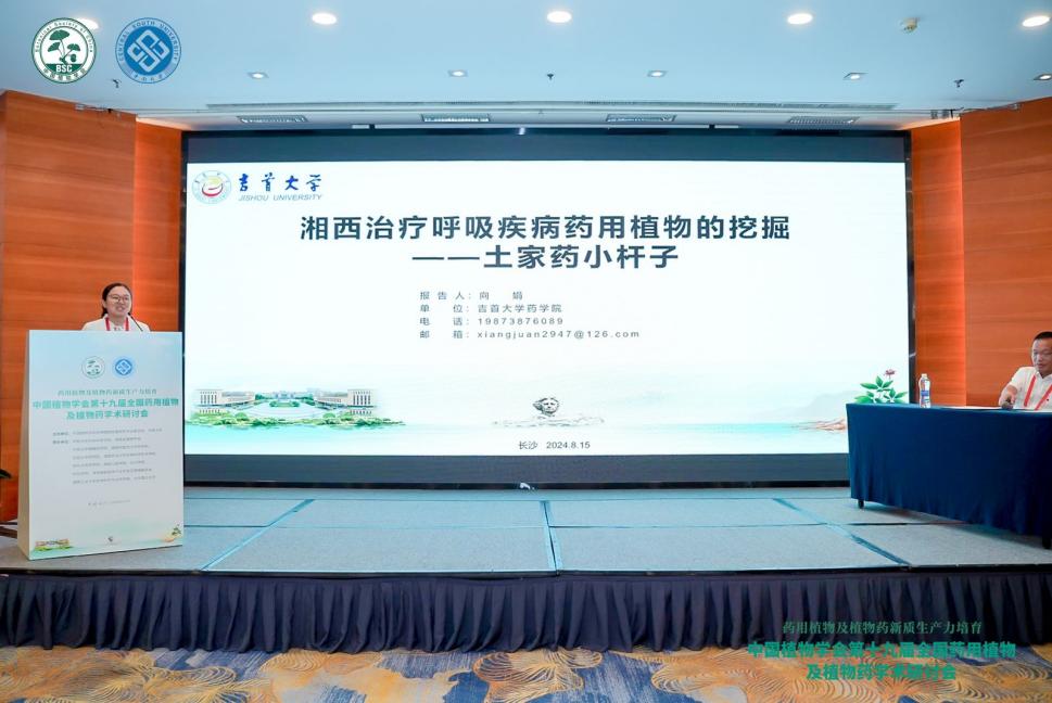 本次会议中,作为中国植物学会药用植物及植物药专业委员会委员,陈功锡教授负责主持了两场学术报告。作为专委会青年委员,EMC易倍中药学系主任向娟副教授在第三分会场做了题为“湘西治疗呼吸疾病药用植物的挖掘—土家药小杆子”的报告,青年老师叶凡博士在第二分会场做了“土家药千里光通过抑制肥大细胞MrgprB2/P2X7受体发挥止痒镇痛作用”的报告,向与会学者展示了他们的研究成果,受到了广泛的关注与好评。