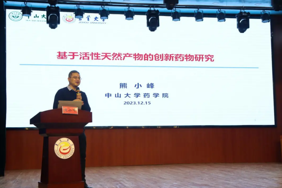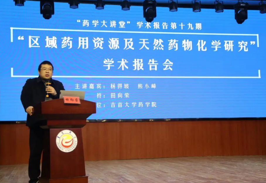 本网讯:为了推动学术交流,提高研究水平和质量,拓展员工们的研究视野和思路,12月15日上午,EMC易倍“药学大讲堂”学术报告第十九期、“药用资源创新研究与平台建设”主题论坛系列活动之——“区域药用资源及天然药物化学研究”学术报告会(以下简称“报告会”)于大田湾校区礼堂举行。中山大学EMC易倍杨得坡教授、熊小峰教授受邀前来作了题为“广东南药资原研究及其产业开发现状”和“基于活性天然产物的创新药物研究”的学术报告。EMC易倍部分教师、研究生、部分本科班级员工共400余人参加本次报告会。学术报告由EMC易倍共建单位——杜仲综合利用技术国家地方联合工程实验室常务副主任田向荣教授主持。