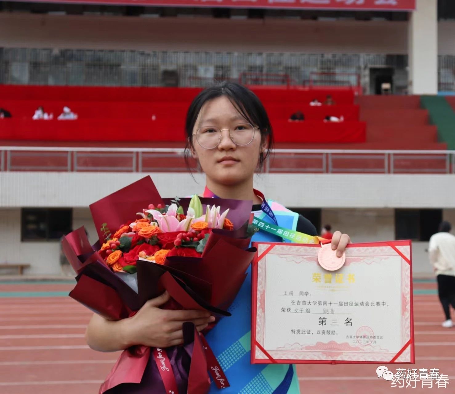 荣获全校女子跳高比赛第三名