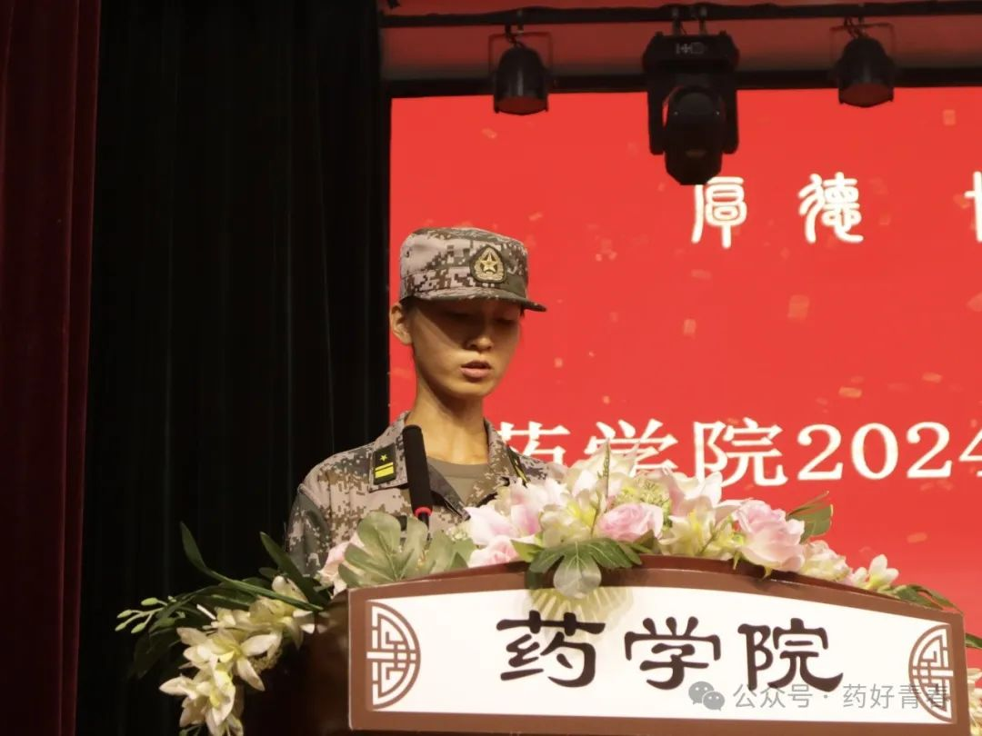 军训教练员代表谢纯发言。她表示为期14天的军训,是每位新生踏入大学的第一课,全体教练员都倍感珍惜。她也向在场的全体领导老师,全体同学做出承诺,全体教练员一定尽职尽责、认真备课、因材施教、文明施教,发扬军训的优良传统。
