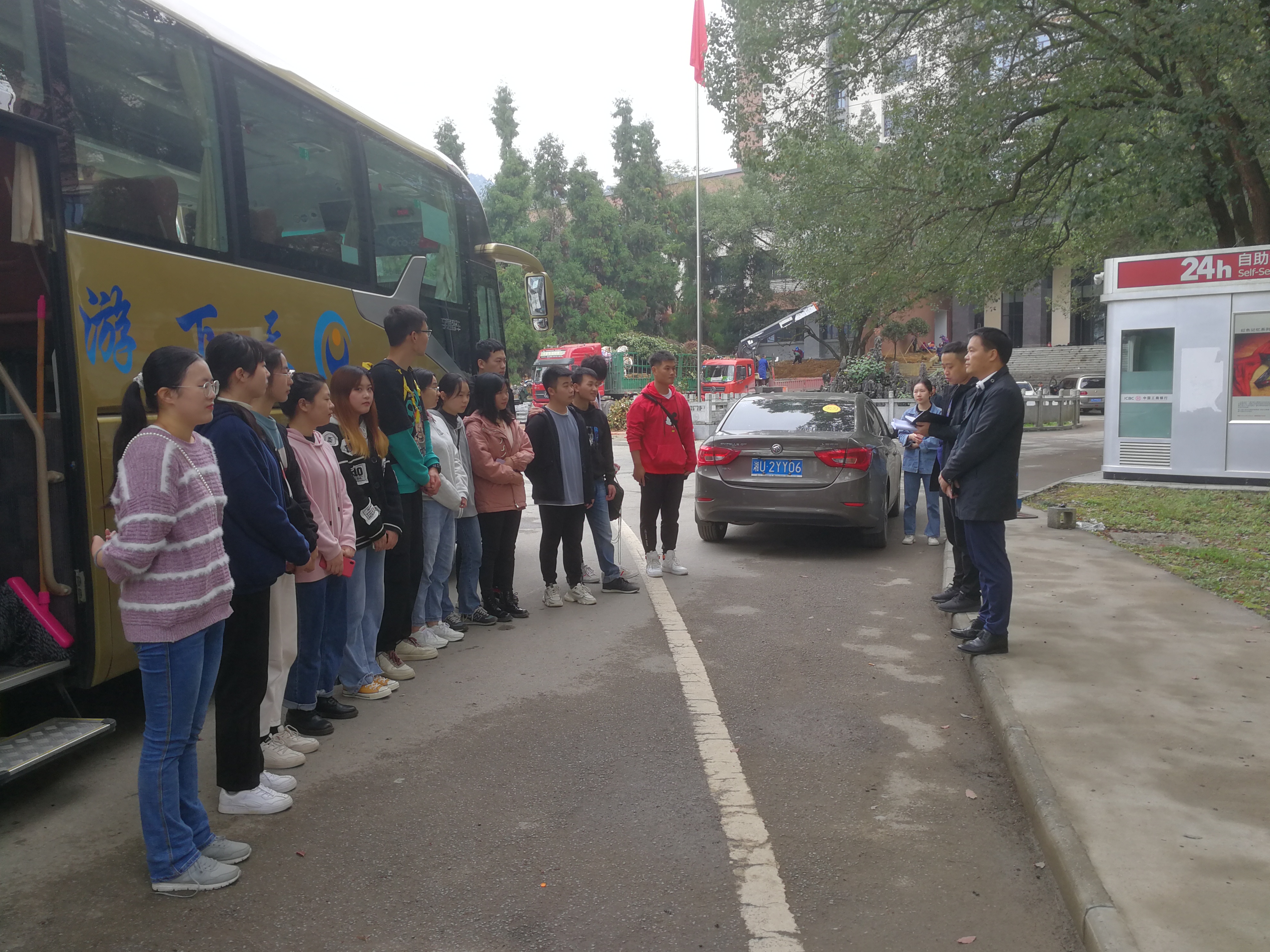 图为 王江生老师为实习队伍送行
