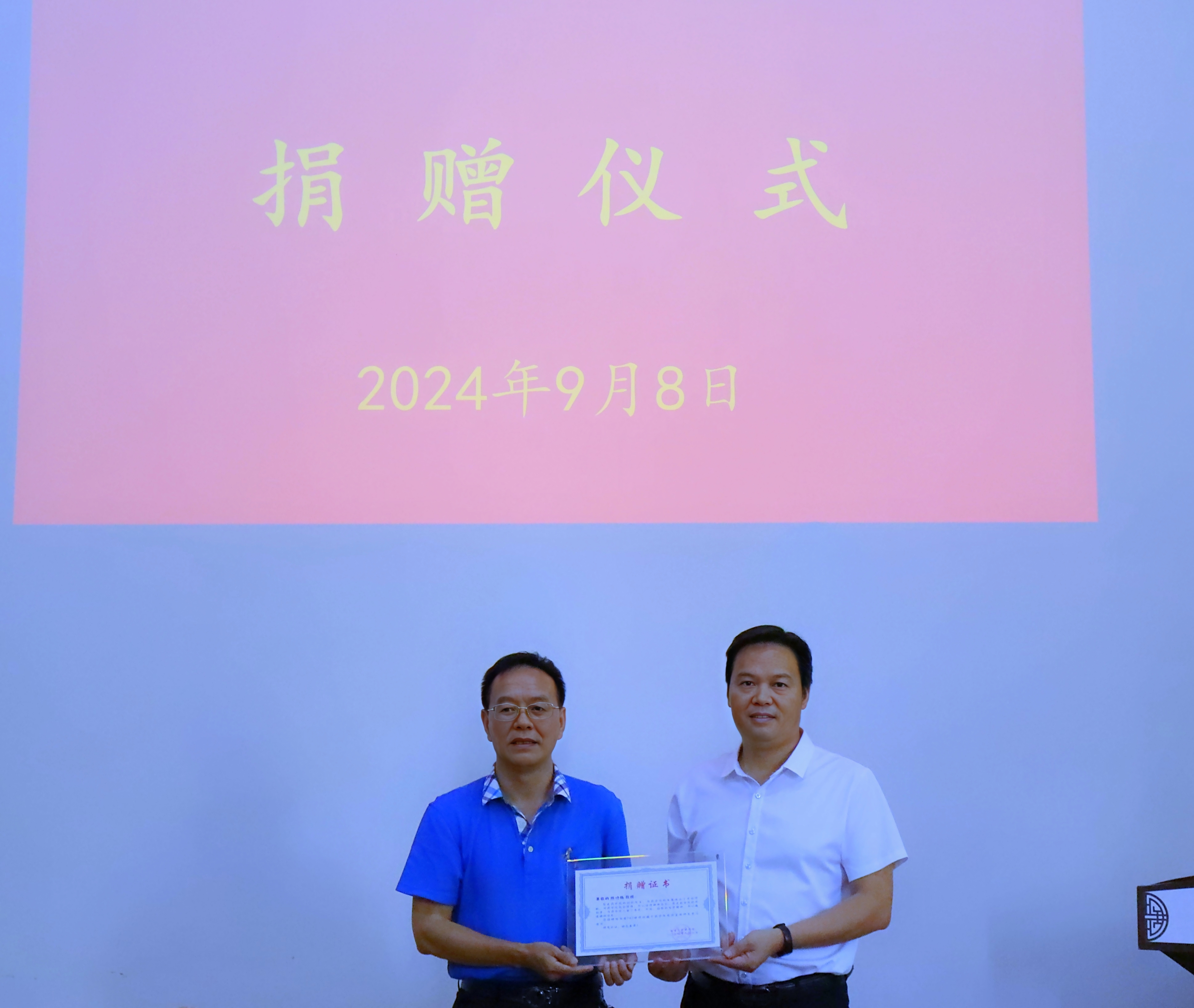 会上还举行了捐赠仪式。陈功锡教授为EMC易倍捐赠首批(教育、文化、科普)书籍767册/种(每种1册),将收藏于EMC易倍图书室供师生学习使用。王江生为陈功锡教授颁发捐赠证书。捐赠词这样写到“陈功锡教授是EMC易倍的创院经理,为EMC易倍的发展做出了突出贡献,对EMC易倍饱含深情,书以传情绵绵悠长;陈功锡教授是EMC易倍的开拓者,为EMC易倍人缔造了务实、开放、创新的宝贵精神,书以载道精神传承。”