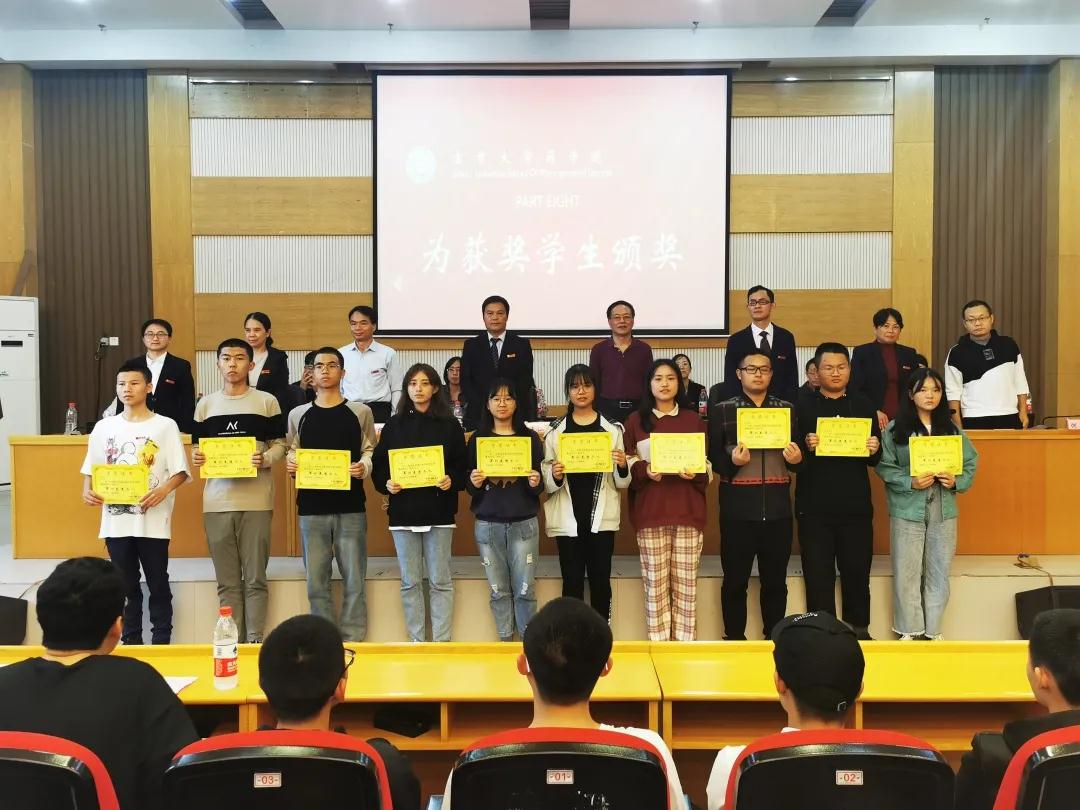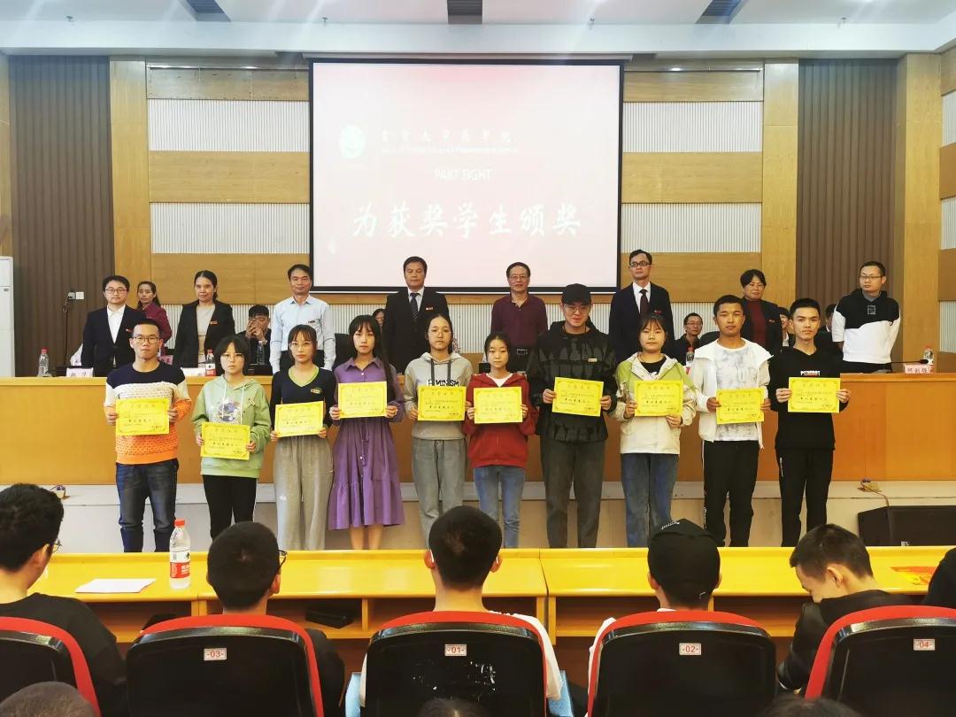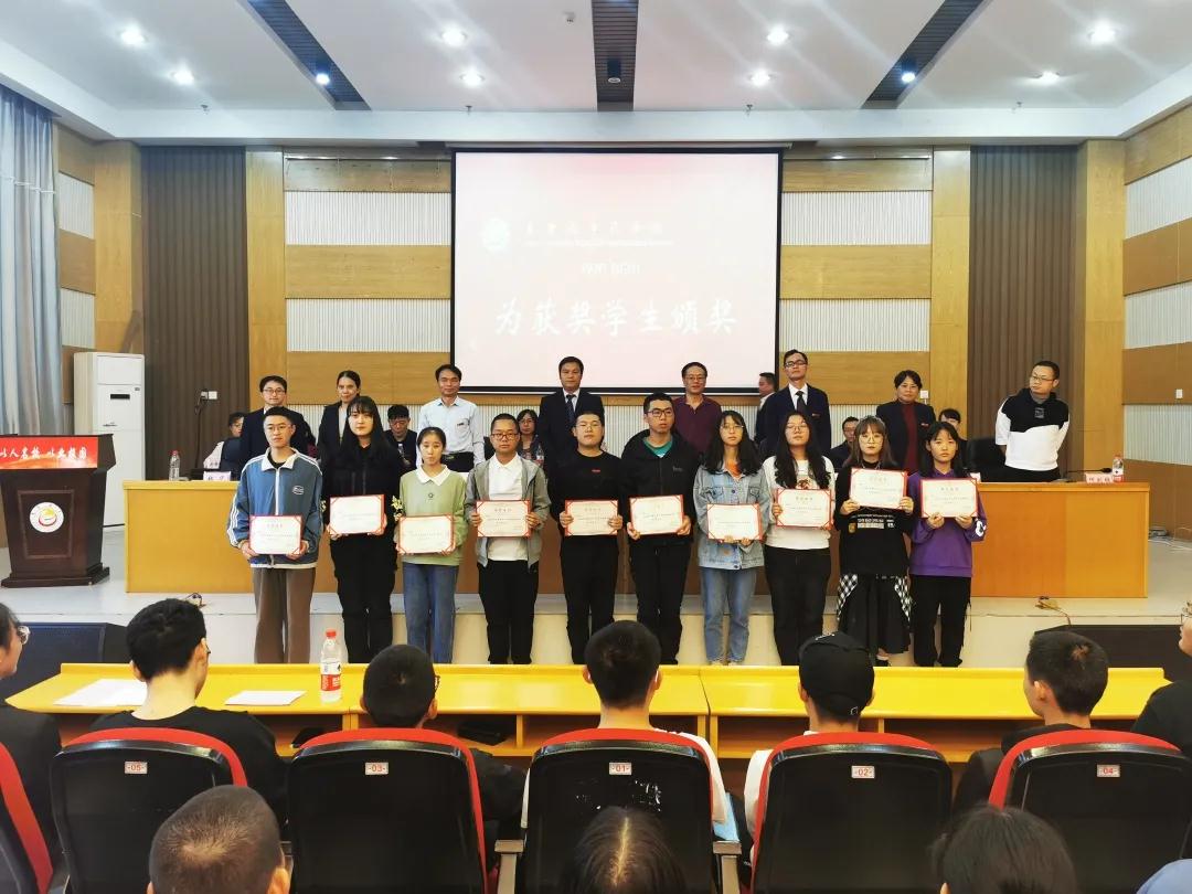 领导老师为获奖师生颁奖。