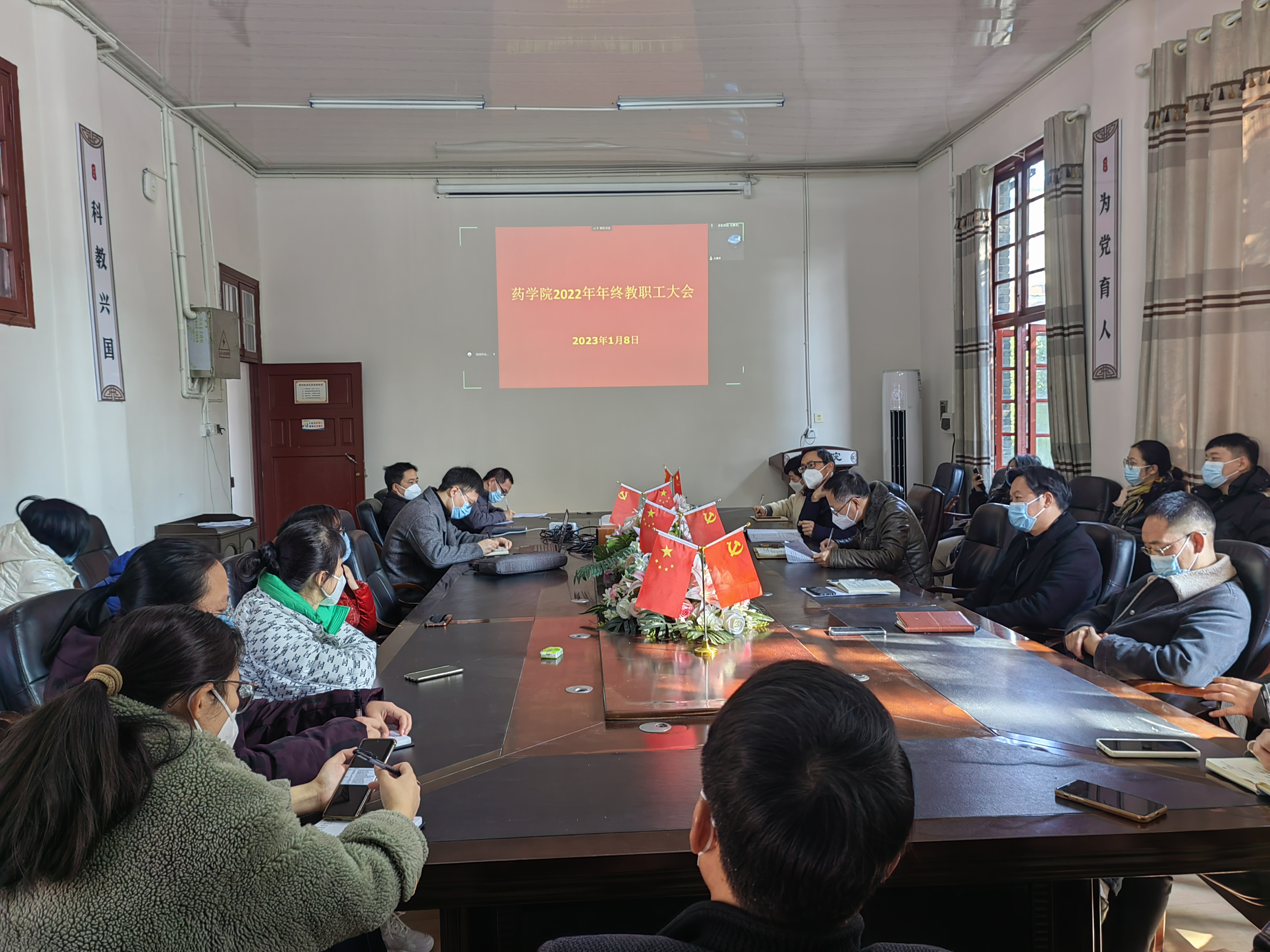 本网讯(潘金凤)2023年1月8日下午,EMC易倍召开2022年度教职工大会,全体教职工参加会议,会议由药公司党委书记、分工会主席王江生主持。