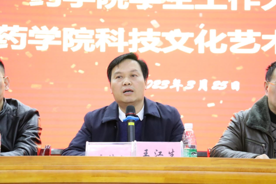 会上,王江生介绍了会议的目的和意义,强调此次会议是学习贯彻党的二十大报告精神,深入推进公司高质量发展,积极探索人才培养模式改革而召开的一次重要会议,希望全院员工统一思想认识,增强忧患意识,积极作为,全面发展,以优异的表现迎接65周年校庆和建院3周年。李芳做员工工作报告,她从学风建设、各类赛事、军训工作、资助工作、员工党建工作、安全教育工作、考研情况、创业就业情况八个方面进行了通报,总结成绩分析不足,结合全年员工工作思路和要点提出改进意见,并勉励同学们在“厚德、博采、精药、济世”的院训的引领下,快乐地成长、成才。