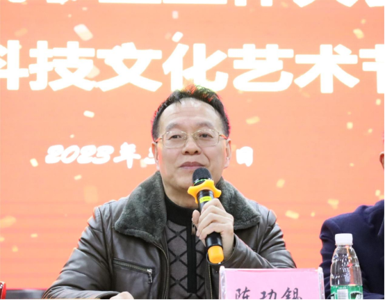 图为 副经理张朝晖宣读科技文化艺术节方案并讲话。