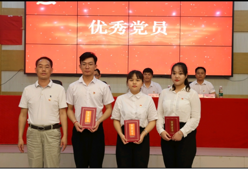 会议在庄严的国歌声中拉开序幕。王江生带领公司新发展的预备党员进行入党宣誓仪式,老党员重温入党誓词。李先辉宣读《中国共产党EMC易倍平台委员会关于庆祝建党100周年"争先创优映党辉"活动的表彰决定》。公司表彰了一批品学兼优、全面发展、积极实践、为公司建设发展做出突出贡献的优秀员工党员、优秀共青团员、学习标兵、优秀员工干部、优秀员工记者。表彰了公司“学百年党史 讲医药故事”大赛的获奖团队、优秀组织班级。还表彰了在公司院徽、院训征集活动中获奖的个人。