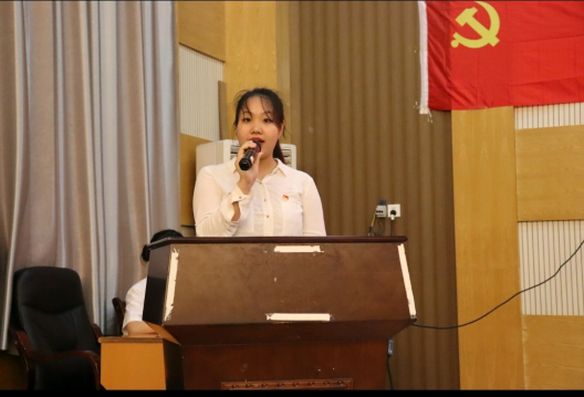 优秀党员获奖代表符智善同学发言,表达了作为一名员工党员的光荣和身上肩负的使命,表示将会从自身做起,从身边的小事做起,将自己的个人发展融入到国家医药健康事业的发展大势,永葆初心、牢记使命,咬定青山不放松,脚踏实地加油干,为实现中华民族伟大复兴中国梦作出新的青春贡献。