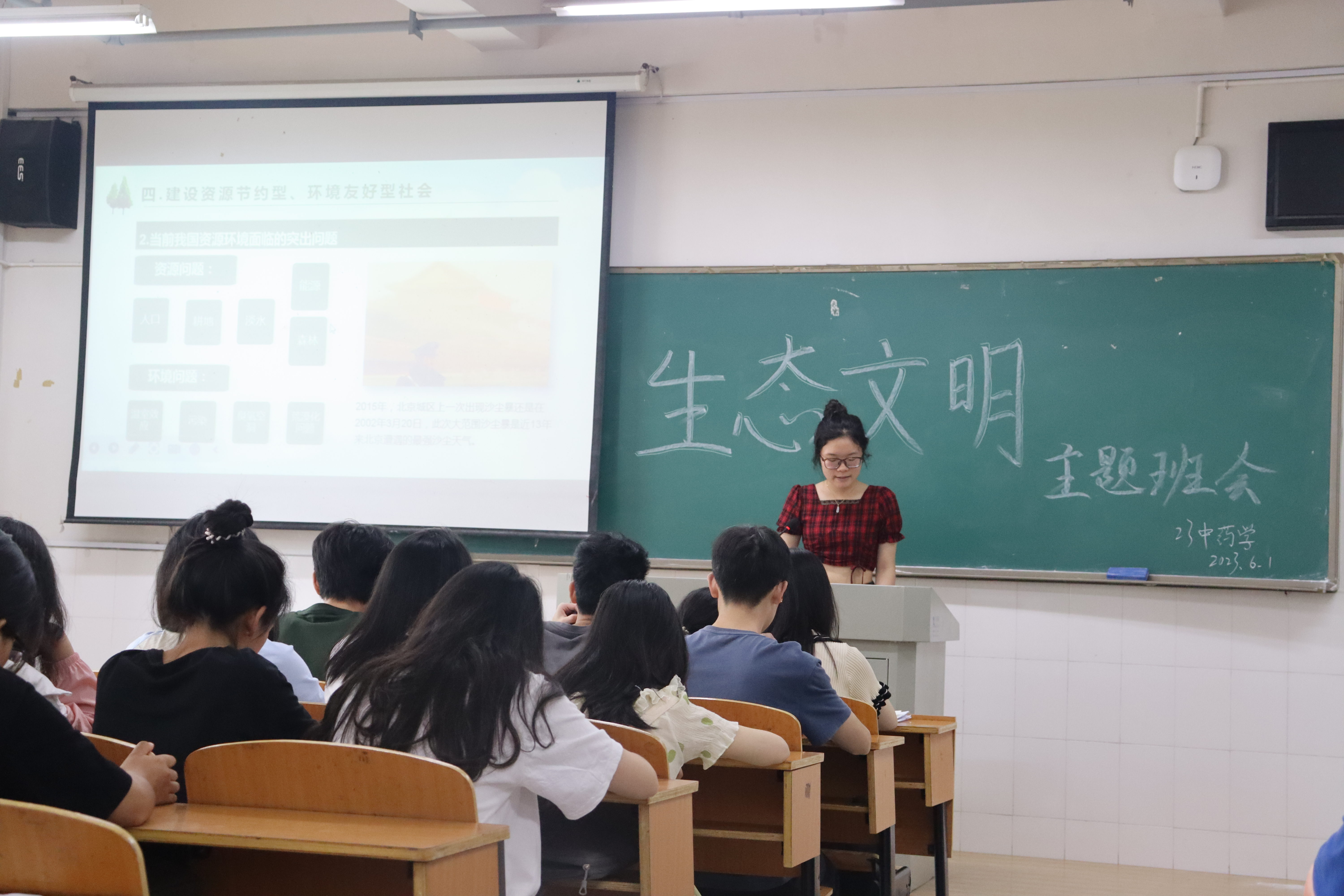 各班通过班主任讲解、观看视频、员工分享、畅谈感受及知识问答等方式,围绕习近平生态文明理念,向同学们讲述了我国在环境保护和物种多样性的方面所颁布的众多政策、举措及成效。除此之外,同学们系统地学习了习近平生态文明理念中的“六项原则”和“十个坚持”,充分了解了新征程上推进生态文明建设需要处理好的五个重大关系。