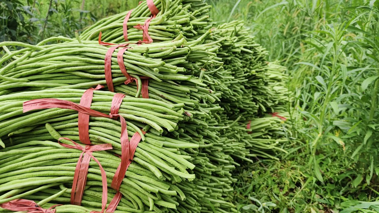 图为 丰收的豇豆