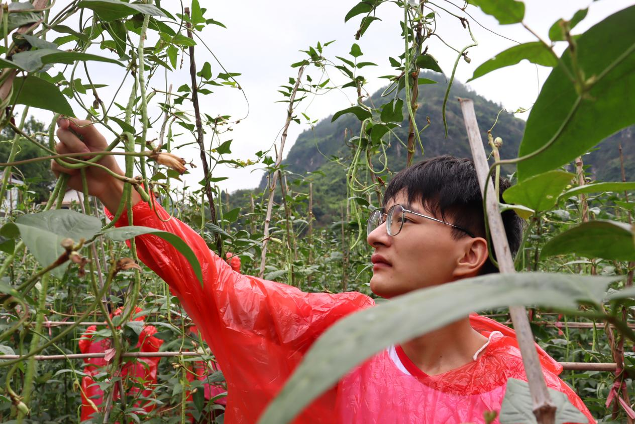 图为 “药好青春”社会实践团前往豇豆种植园