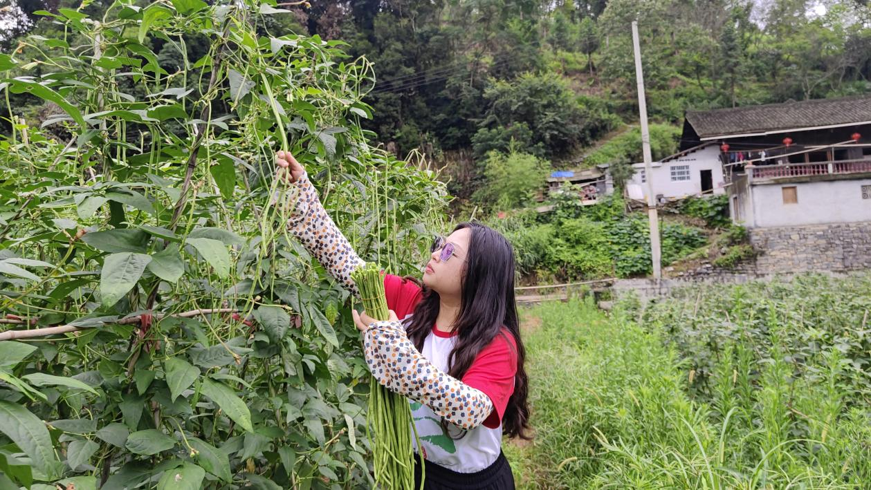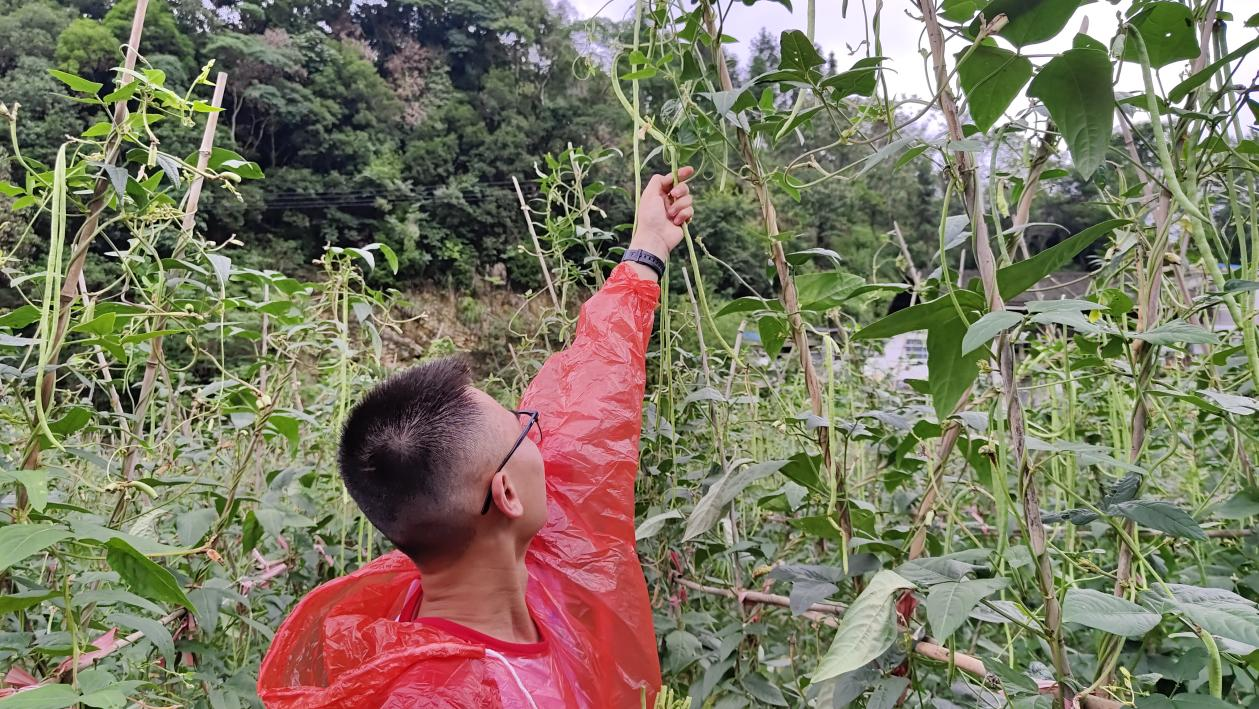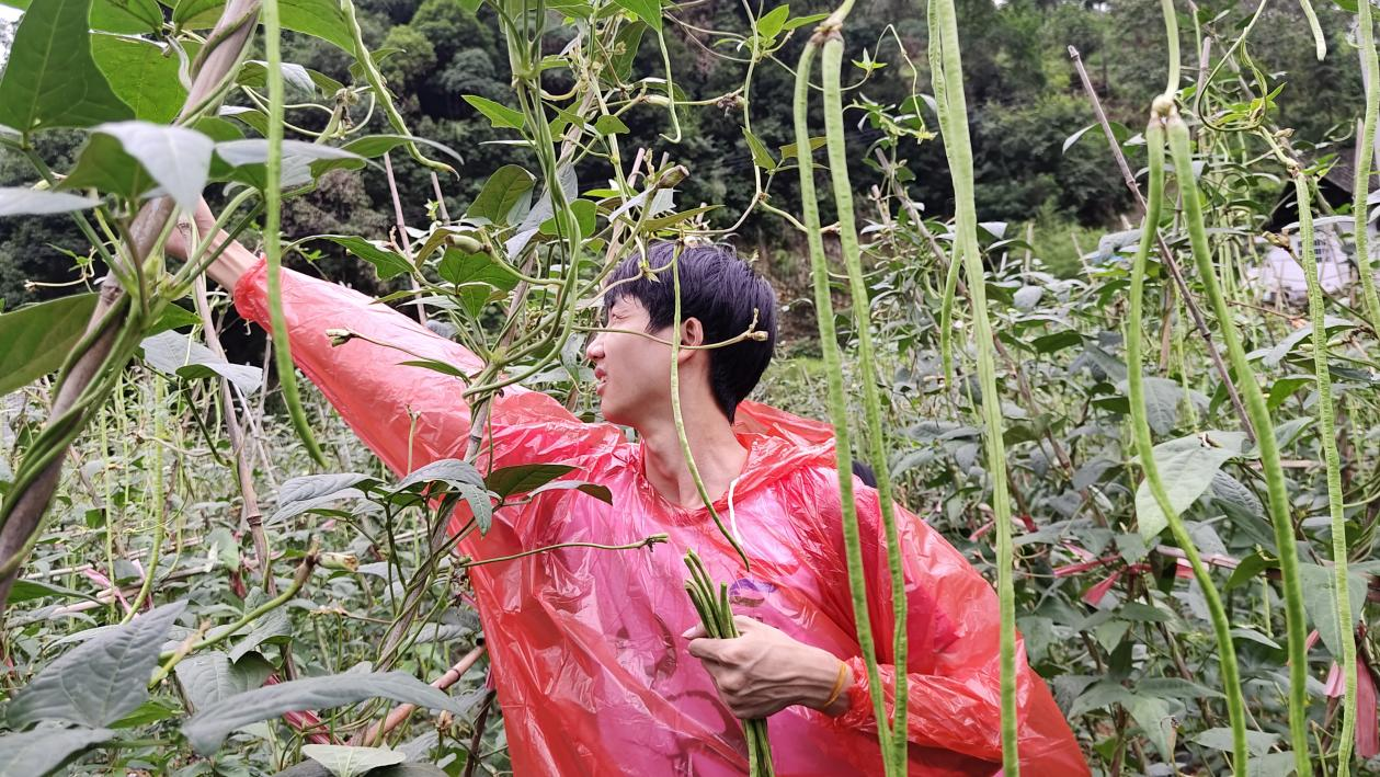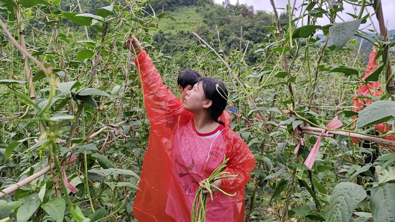 7月,中寨村正值豇豆丰收的季节,豇豆地里一片繁忙和喜悦的氛围。村民们热情地为志愿者们讲解采摘豇豆的方法和技巧。沐浴着阳光,穿梭在豆藤架之间,不一会,一捆捆的豇豆堆得便有小山丘那么高。