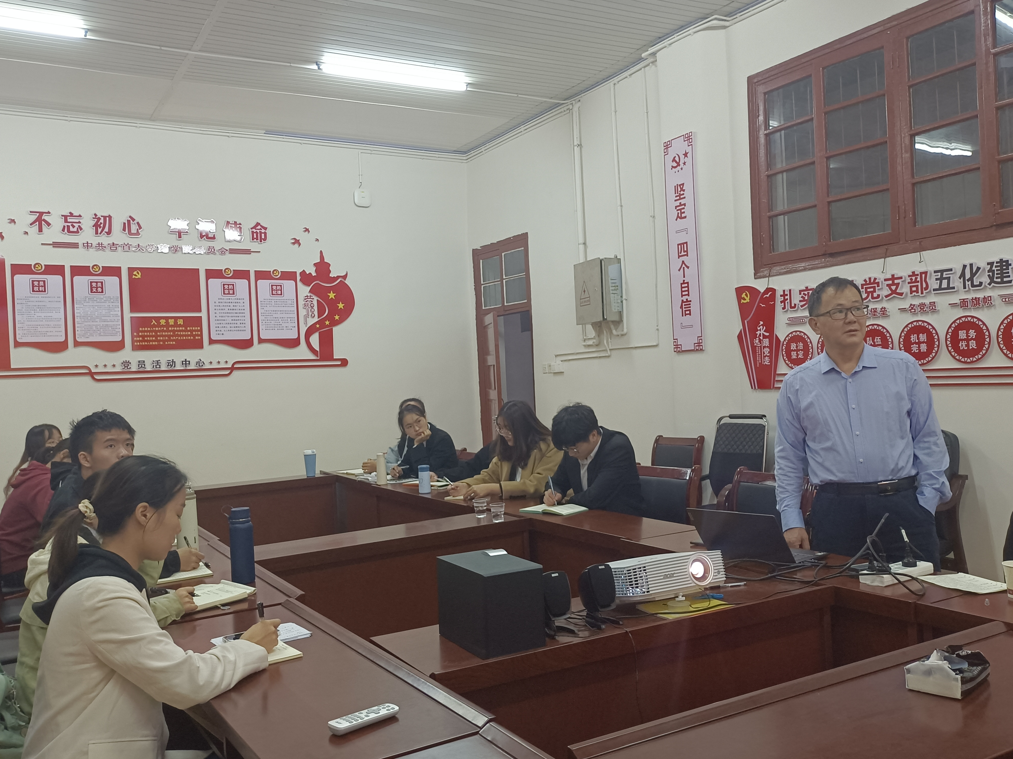 图为 戴军老师在党课上讲课