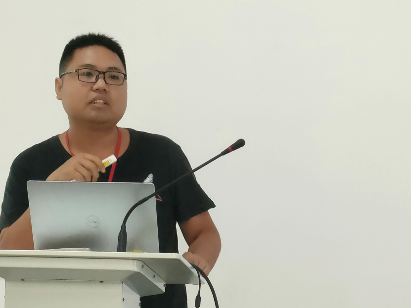 图为 天地恒一公司药物研究院制剂所工艺技术部研究员、员工吴广成与公司师生交流。