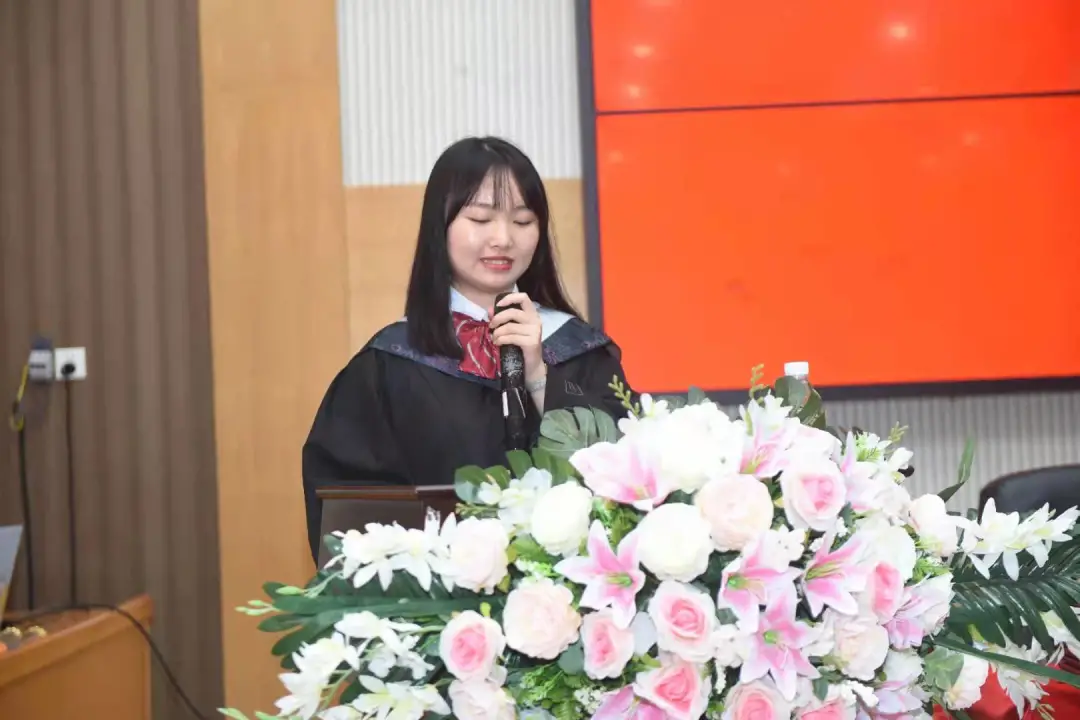 2021届毕业生代表、国家奖学金获得者曾正媛发言。她回顾了大学四年的点点滴滴,感谢公司和公司提供的学习环境和茁壮成长的平台,表达了对母校、师长、同窗的感谢与依依不舍之情,并祝愿母校在“双一流”建设中取得新突破、再创新辉煌,祝愿EMC易倍蓬勃发展,祝愿各位老师身体健康、工作顺利。