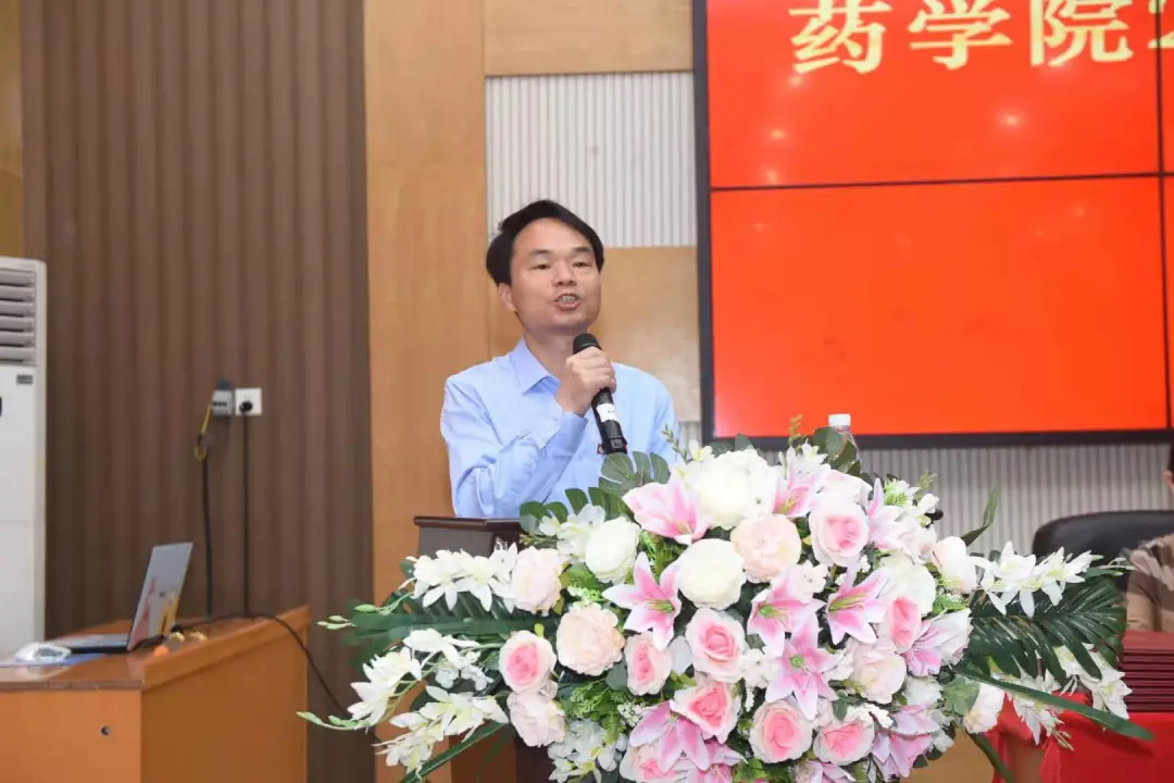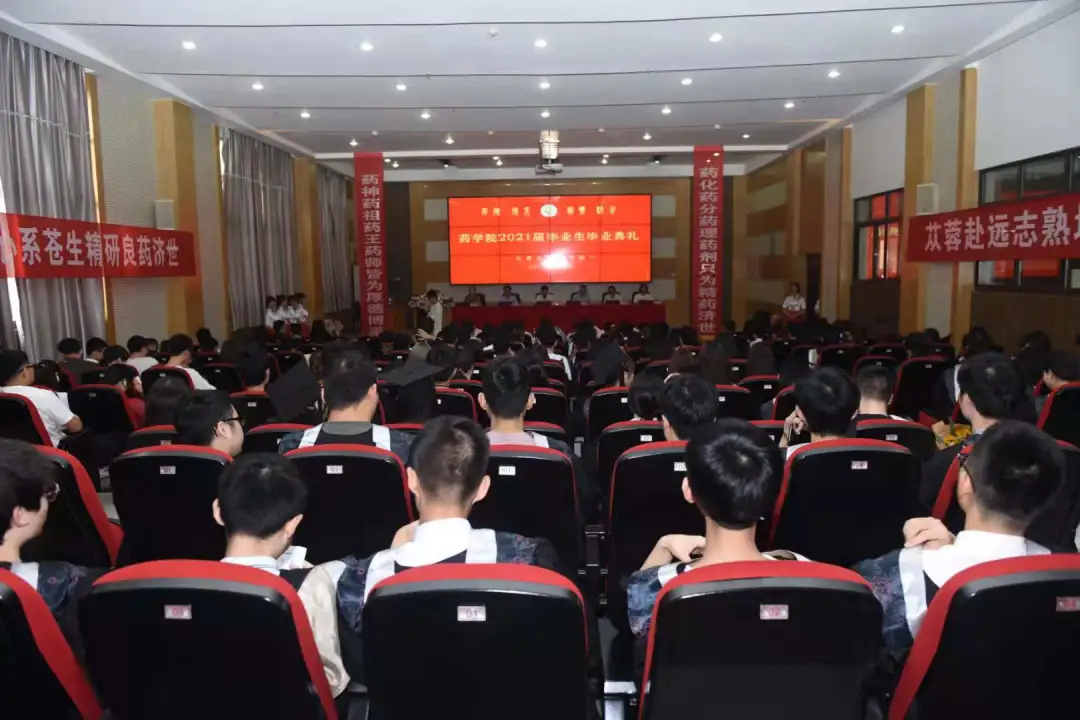 典礼现场的一幅对联“药神药祖药王药师皆为厚德博采 药化药分药理药剂只为精药济世”,巧妙地把院训融入其中,表达了公司对首届毕业生的殷殷期待,祝愿同学们前途似锦,平安健康,快乐幸福!
