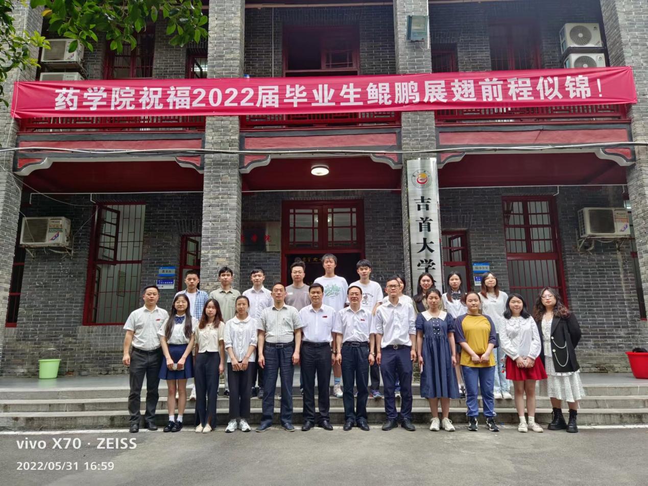图为2022届升学员工在EMC易倍大楼前与老师合影留念