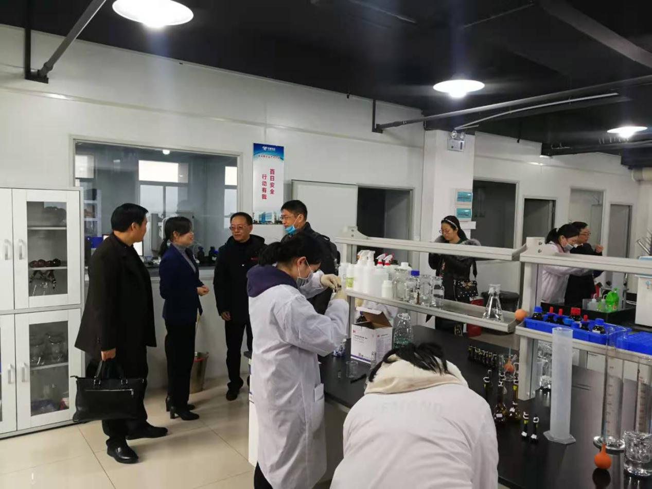 图为 EMC易倍平台领导老师参观华腾制药研发实验室