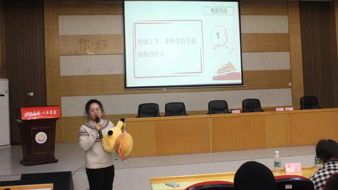 其后,石静咏诗老师带领同学们进入到有奖互动环节。首先,同学们根据“疫情之下,你所学的专业能做些什么?”这一主题,结合自己所学的专业知识和自身特长,将自己的个人理想融入国家理想,畅谈自己能为社会做出的贡献。随后,进入到自由互动环节,各院员工踊跃就参加本次分享会的感想及收获畅所欲言。