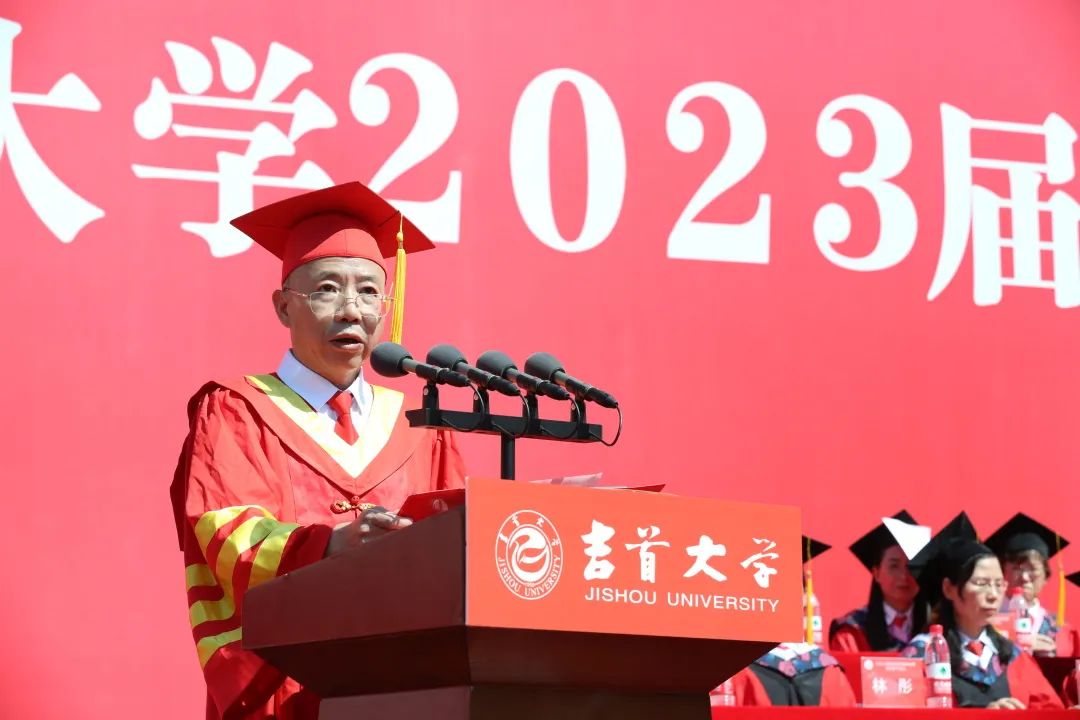 同学们!大学期间,你们亲历、见证了第一个百年奋斗目标的实现,到2035年将基本实现社会主义现代化,到本世纪中叶建成富强民主文明和谐美丽的社会主义现代化强国,实现第二个百年奋斗目标。到本世纪中叶,你们才50岁左右,你们是功成必定在我、功成必定有我的一代,遇上的时代无比伟大,肩上的责任无比重大。时代潮流奔腾不息,历史车轮滚滚向前。奋进新时代,筑梦新征程,以中国式现代化推进中华民族伟大复兴的路上,没有中场休息。从今以后,你们将奔赴新的战场,用火热之青春续写砥砺前行、筑梦圆梦的新篇章。希望你们践行“以人名校、以业报国”的校训,以青春之我创建青春之家庭、青春之国家、青春之民族、青春之人类、青春之世界、青春之宇宙。站在人生新的起点,面对前行中的机遇与挑战、成功与失败、顺境与逆境,唯牢记初心使命者进,唯坚定自信者胜,唯不懈奋斗者成,唯开拓创新者强。