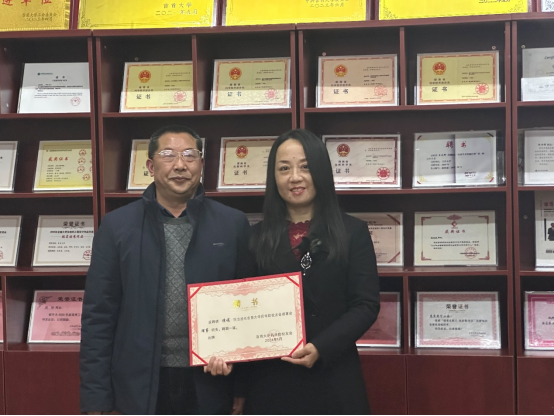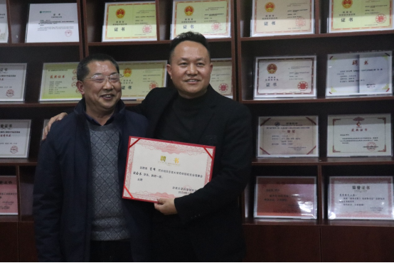 图为周华忠副董事长颁授“EMC易倍平台员工分会”会牌