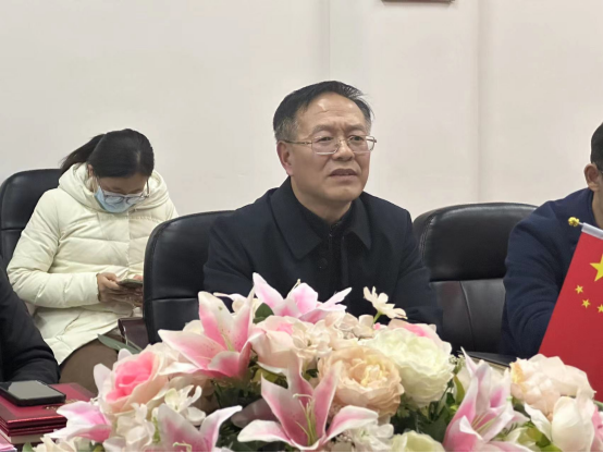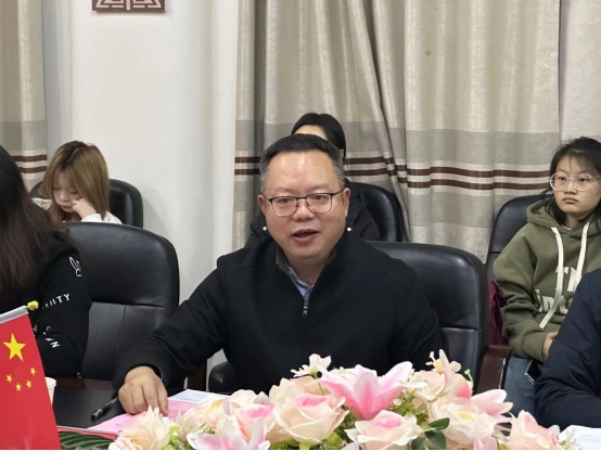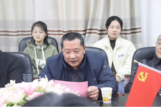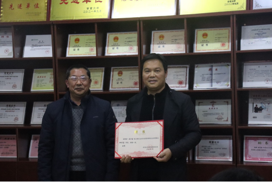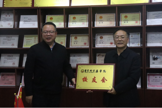 1990届中药9班员工、公司董事长萧峰作热情洋溢的发言,深情地表达了对母校的感情,寄语对EMC易倍的美好祝愿,表示中药专业前景美好,他就中药专业建设提出了自己的看法和建议。