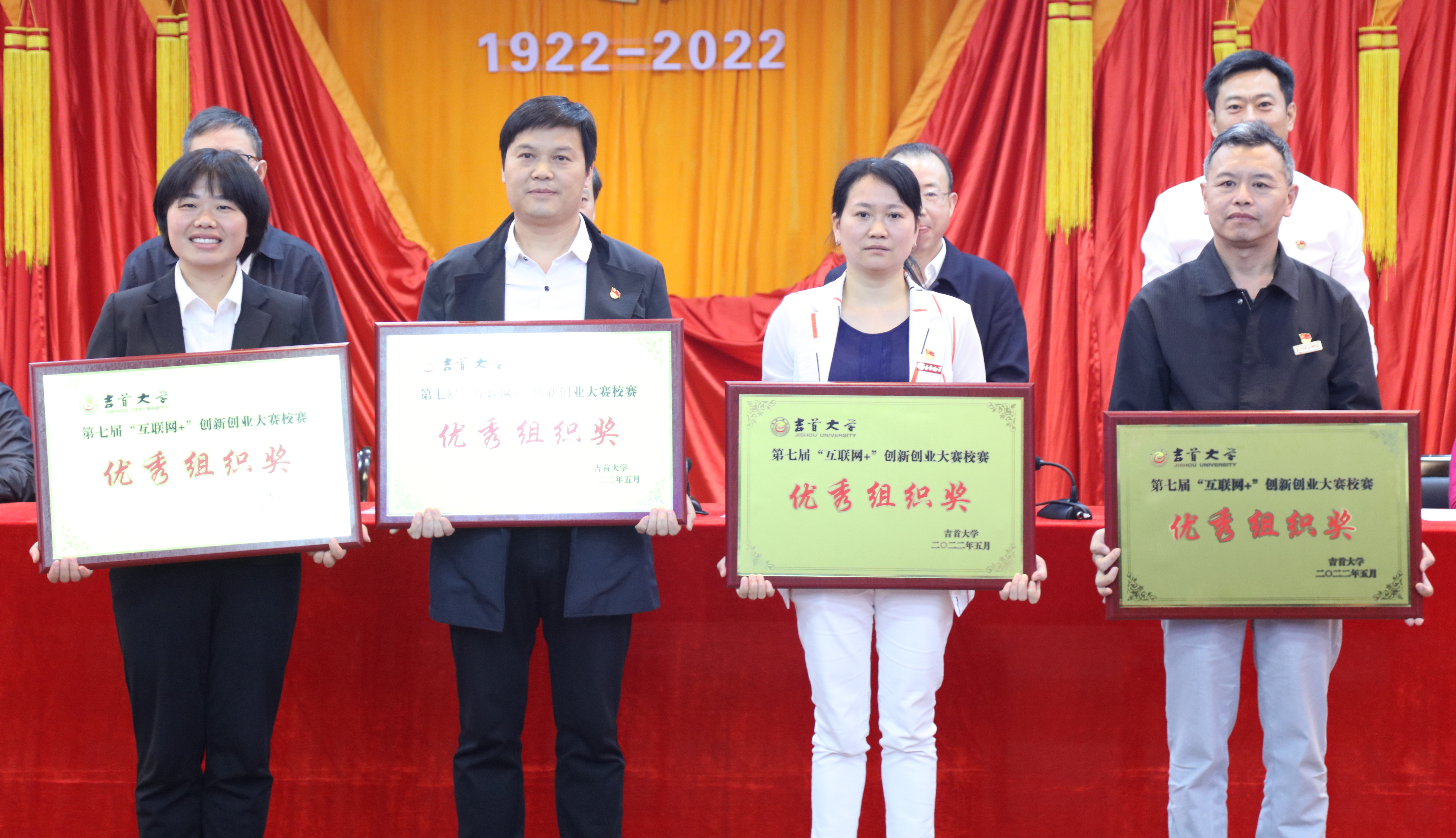 会上,公司党委副书记、董事长黎奇升宣读了《共青团EMC易倍官网委员会2021-2022学年五四表彰决定》《EMC易倍官网关于表彰2021年“万名师生走进武陵山”老员工暑期“三下乡”社会实践活动优秀团队、优秀指导老师的决定》《EMC易倍官网关于表彰第十四届“挑战杯”老员工课外学术科技作品竞赛获奖单位的决定》以及《EMC易倍官网关于表彰第七届“互联网+”创新创业大赛获奖项目和优秀组织单位的决定》。希望获奖的优秀集体和个人能继续戒骄戒躁,再创佳绩,将美好精神品质传递到广大青年群众中。公司荣获第七届“互联网+”创新创业大赛优秀组织单位,彭俊、石静咏诗老师荣获暑期社会实践优秀指导老师。