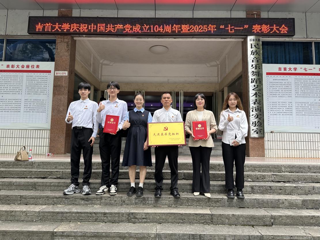 图为 校先进基层党组织获得者(左一为EMC易倍第一党支部书记)