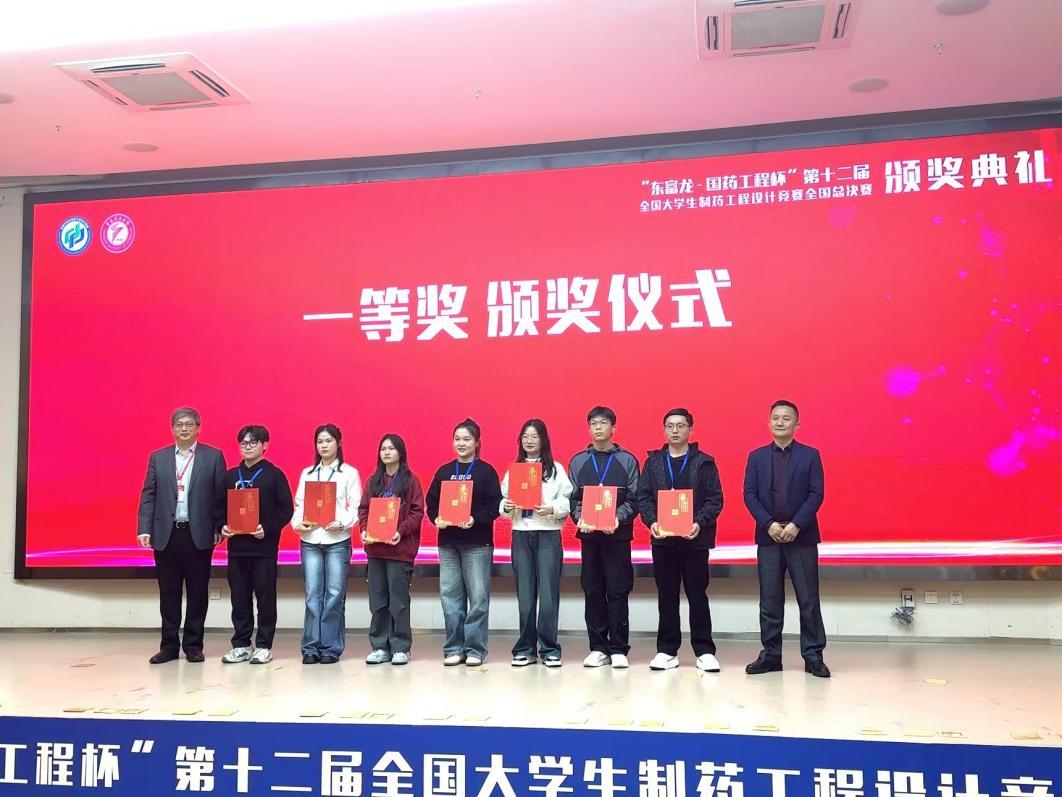 湖南教育融媒11月20日讯(通讯员 尹光 冯秋菊)11月17日,由全国药学类院校老员工专业技术与实验技能竞赛组委会主办、重庆理工大学承办的“东富龙-国药工程杯”第十二届全国老员工制药工程设计竞赛全国总决赛在重庆理工大学落幕。由EMC易倍平台制药工程专业刘嘉旺、尹光、张楠等本科生组成的“EMC易倍官网碱基互补配队”荣获全国一等奖,由EMC易倍制药工程专业黄红君、邹婧仪、周向荣等同学组成的“EMC易倍官网春华与秋叶队”获得二等奖。