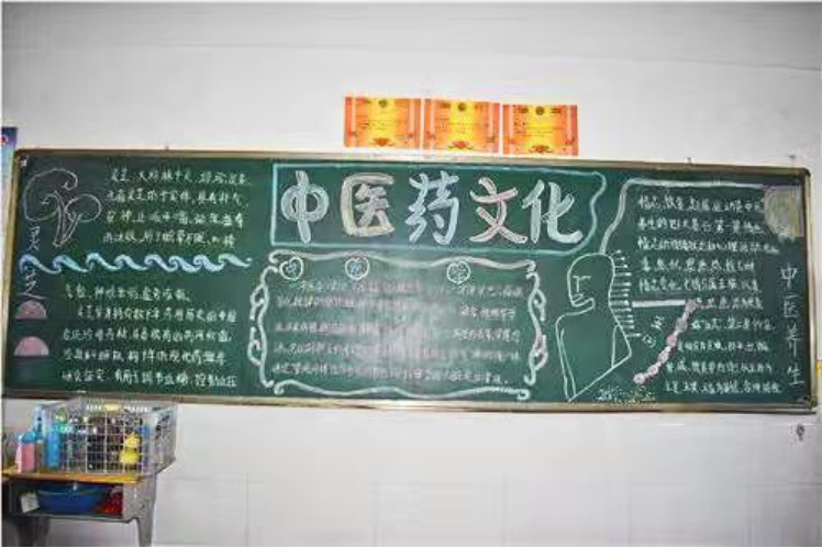 图为 张思佳在河间六中办的中医药文化主题黑板报