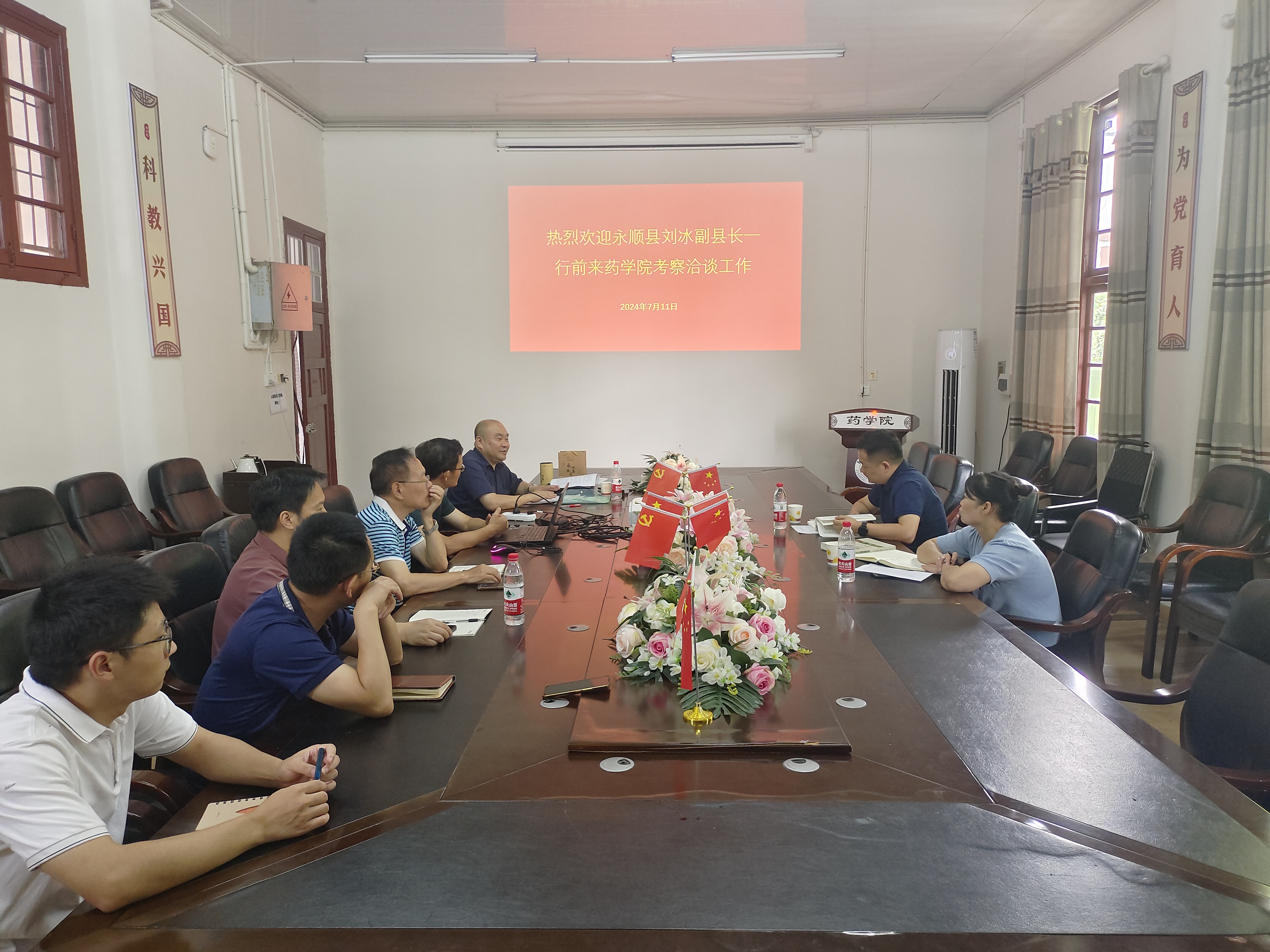 本网讯:7月11日上午,永顺县副县长刘冰,永顺县市场监督管理局党组书记、局长张宗江一行来公司考察洽谈中医药和生物医药产业工作,在EMC易倍会议室举行了座谈会。EMC易倍经理陈功锡、党委书记王江生、副经理李先辉、副经理张朝晖和部分教师参加了座谈会,原驻永顺县五官村乡村振兴工作队队长、驻村第一书记、公司退休教师李端生教授受邀参加座谈会。座谈会由王江生主持。