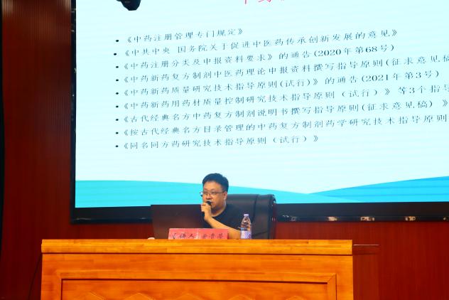 曾贵荣首先立足湘西土家族苗族自治州独特的地理区位优势,阐述了民族医药的特色价值。随后详略得当地分享了中药新药研发趋势、医疗机构中药制剂研发、高校新药成果转化策略及食药同源物质管理等方面的研究成果与实践经验,还强调中医药创新需“传承精华,守正创新”。