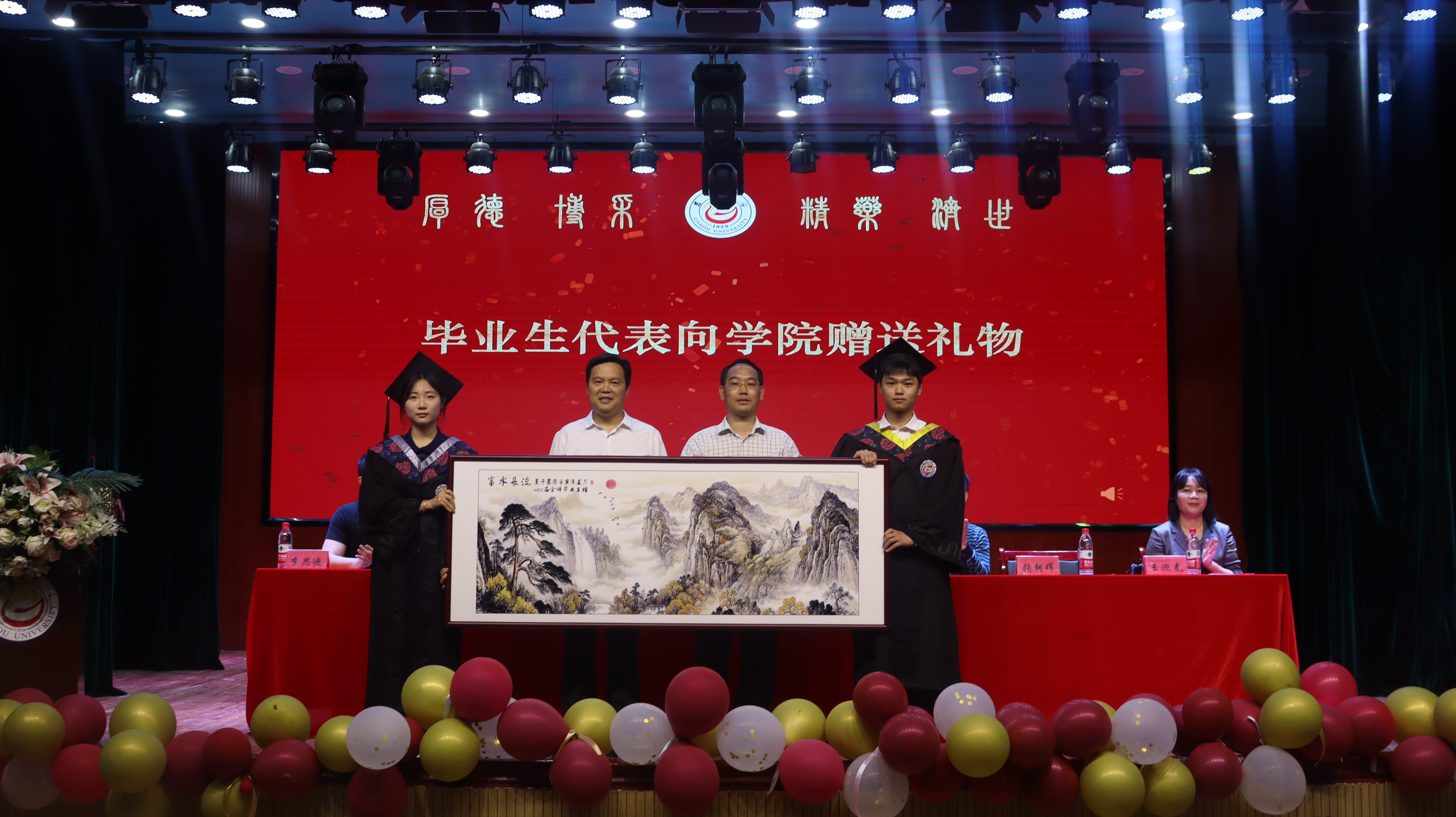 随后,毕业生代表缓步登台,代表全体毕业生向公司郑重献上精心准备的礼物。这份礼物承载着学子们对公司培养的深厚感激与依依眷恋,象征着毕业生们对公司未来发展的美好祝愿。仪式的温情延续,毕业生代表们手捧芬芳的鲜花,满怀敬意地走向陪伴他们成长的班主任老师。鲜花献上,一个深情的拥抱和鞠躬,道不尽对恩师谆谆教诲和无私奉献的深深谢意,温馨感人的场面将现场气氛推向高潮。