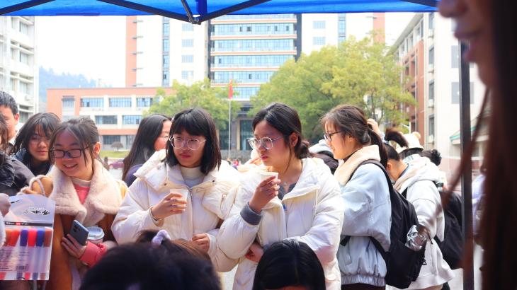 在茶文化课堂中,志愿者们讲述了茶叶的千年历史与情绪调节的奇妙功效,让同学们如品香茗,领悟心理健康之道。活动还设置趣味问答环节,答对者赢取精致茶礼,点燃全场参与热情。