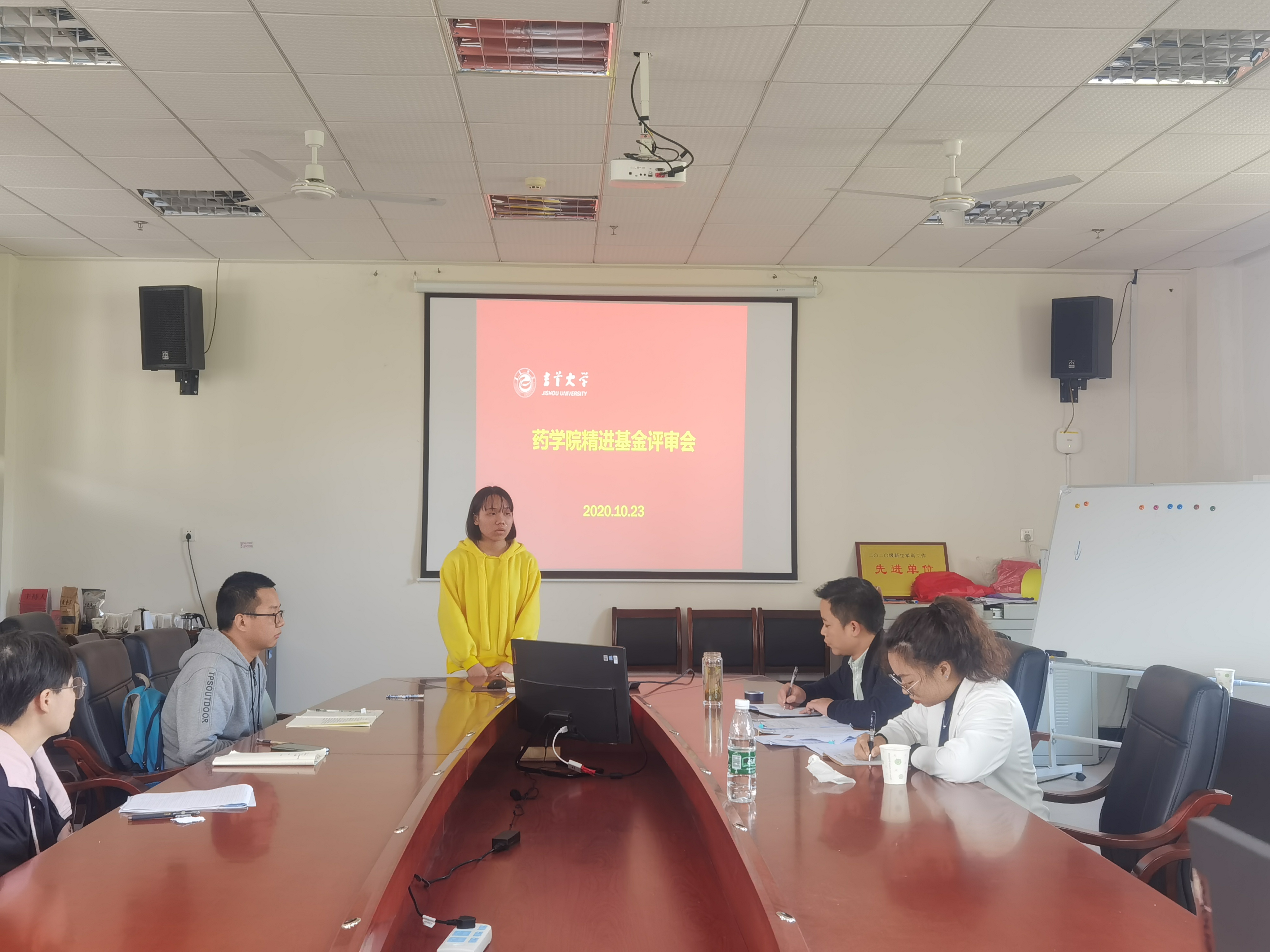 (通讯员 彭俊) 10月23日中午,公司“精进基金”助学金评审会在709会议室举行,2020级4名新生参加评审答辩,公司学工办老师彭俊、石静咏诗等担任评委。